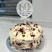 Personalised with name and age on a white acrylic cake topper
