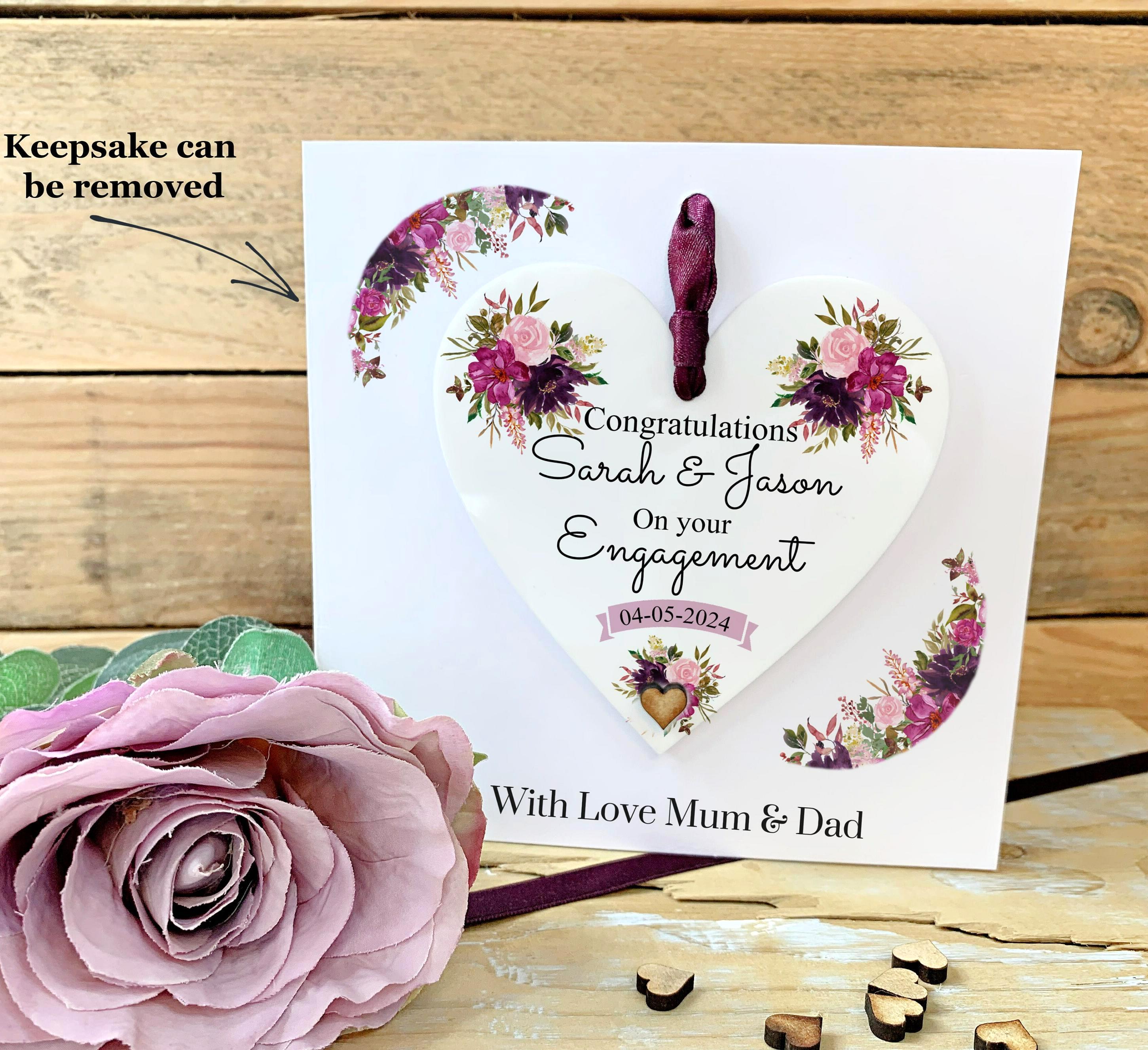 Our Engagement Keepsake Card is a perfect gift for an Engagement party, gift for your Daughter/ Son or Friend or simply a gift for you and your party to mark this special day. Made from acrylic this keepsake card features a heart-shaped design that exudes love and romance. This card serves as a lasting reminder of a special day, capturing precious memories that can be cherished for years to come.