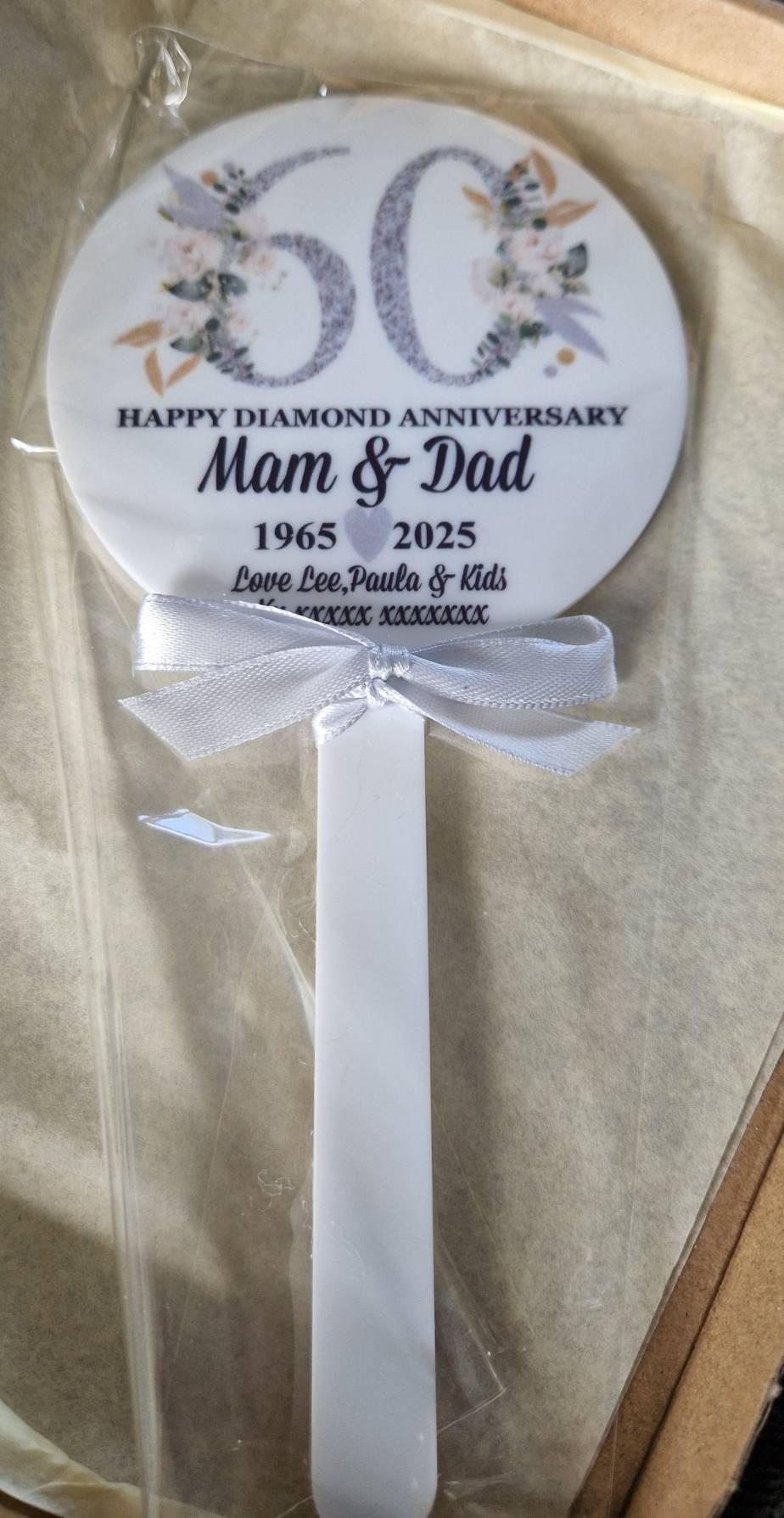 This beautiful Personalised Anniversary Plant/Flower Stake is the perfect way to add personalised details to a plant or bouquet of flowers this not only makes a great plant stake but a treasured memento to keep for years to come, Handcrafted with care, this unique gift can be personalised with Relations or names. A thoughtful and meaningful keepsake, this lovely item is sure to bring a smile to the happy couple faces as they reflect on the years that they have spent together.
