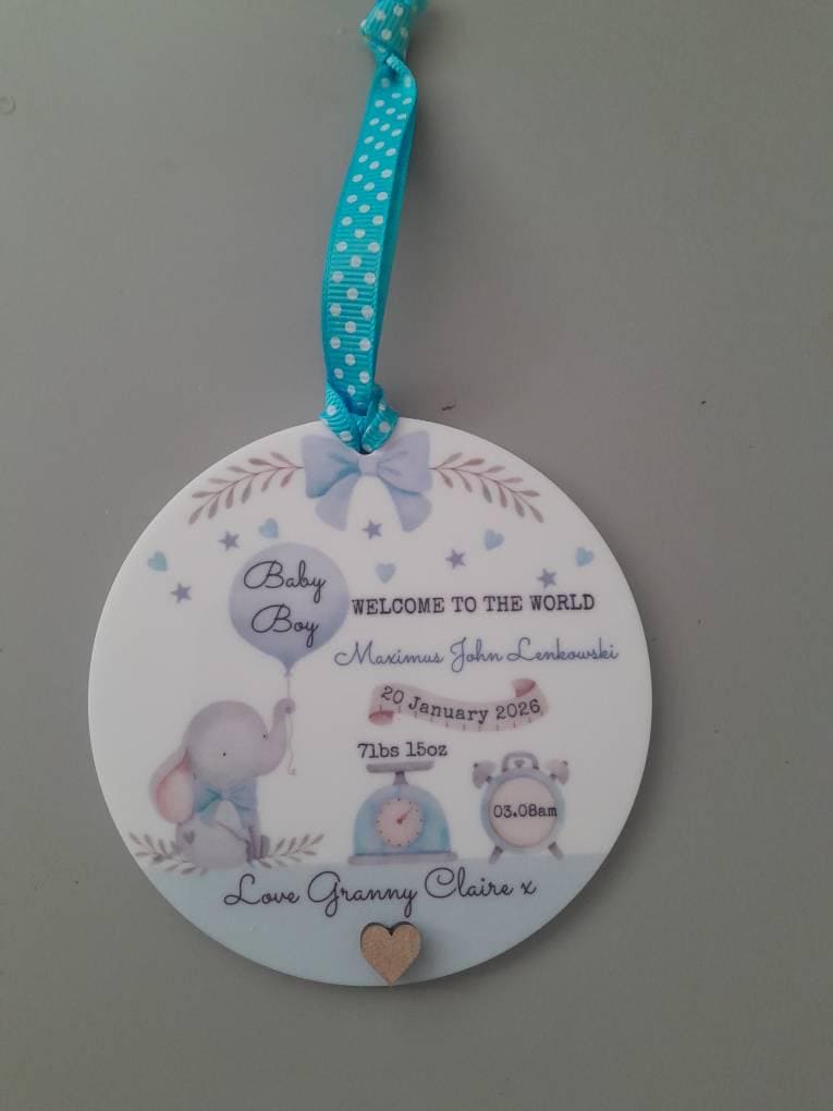 Mark this event with the details of the birth date and weight of the baby adding a name to finish off the gift.