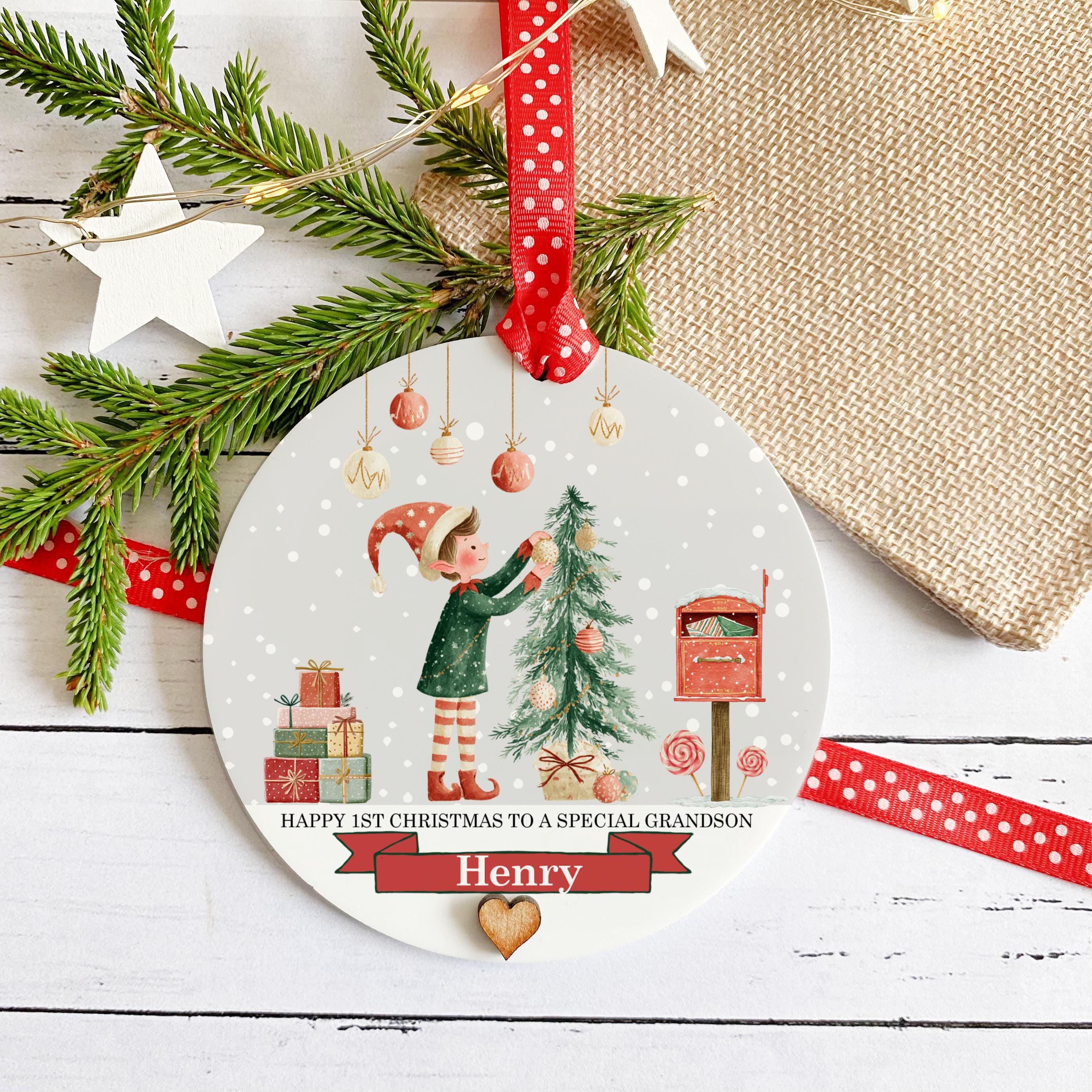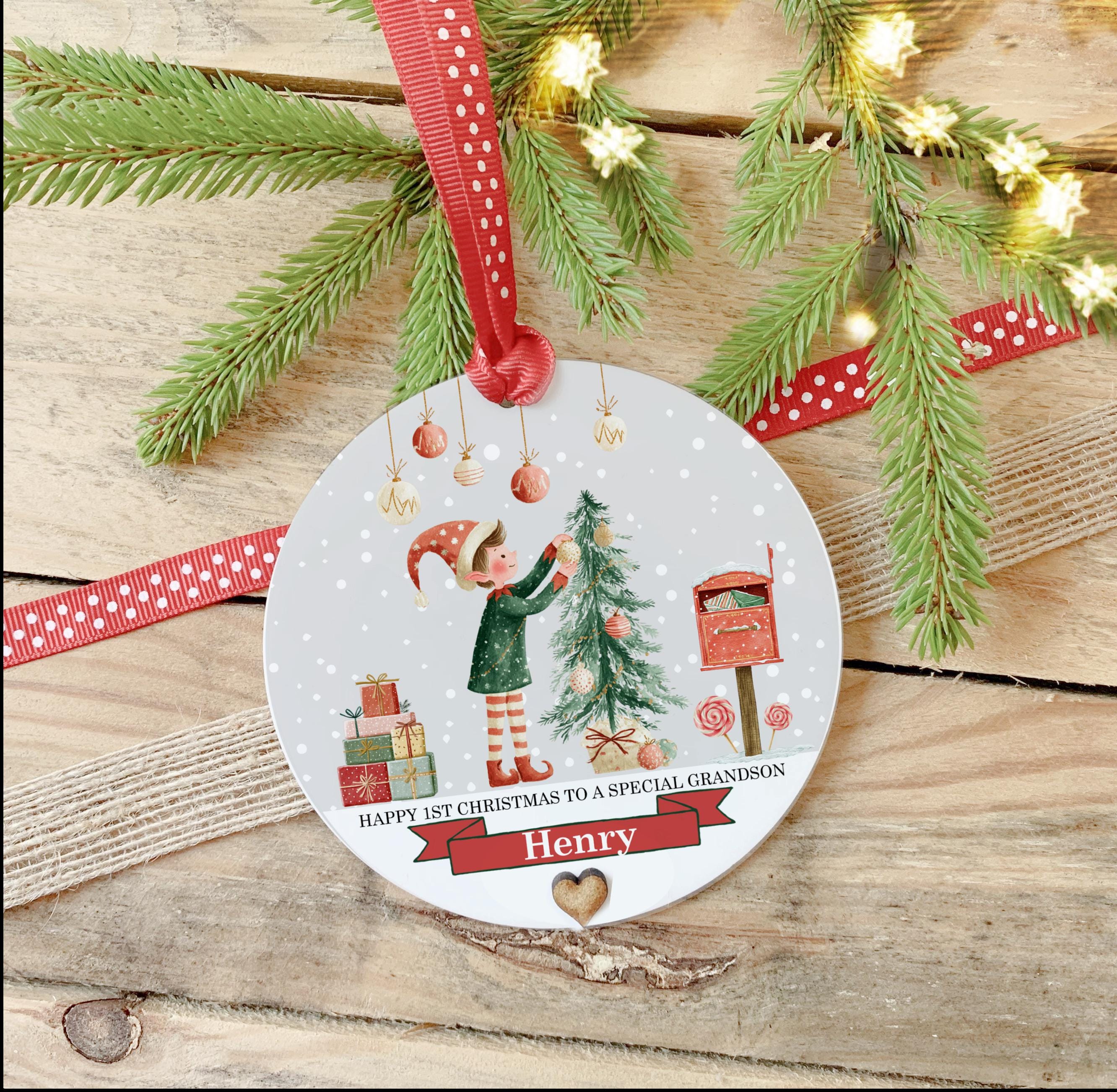 A "Baby's First Christmas" tree decoration is a heartwarming and personalised ornament designed to commemorate a baby's very first Christmas. This features elements that highlight the special milestone, such as the baby’s name, the year of their first Christmas,