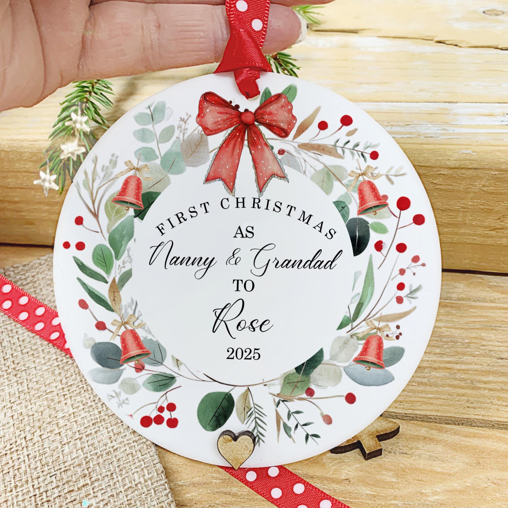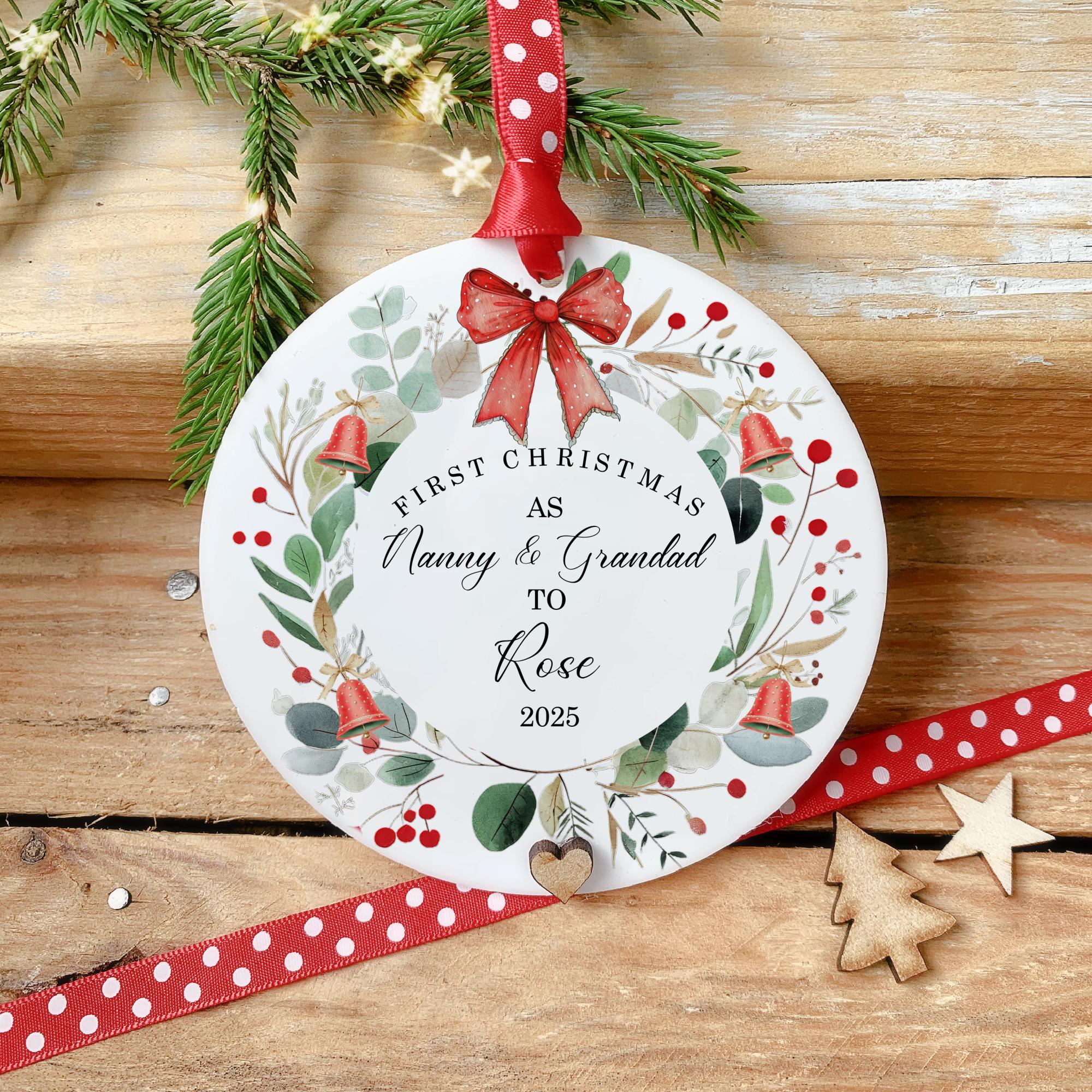 Celebrate a magical milestone with this 1st Christmas as Grandparents bauble wreath ornament — a beautiful keepsake to mark the joy of welcoming a new grandchild!