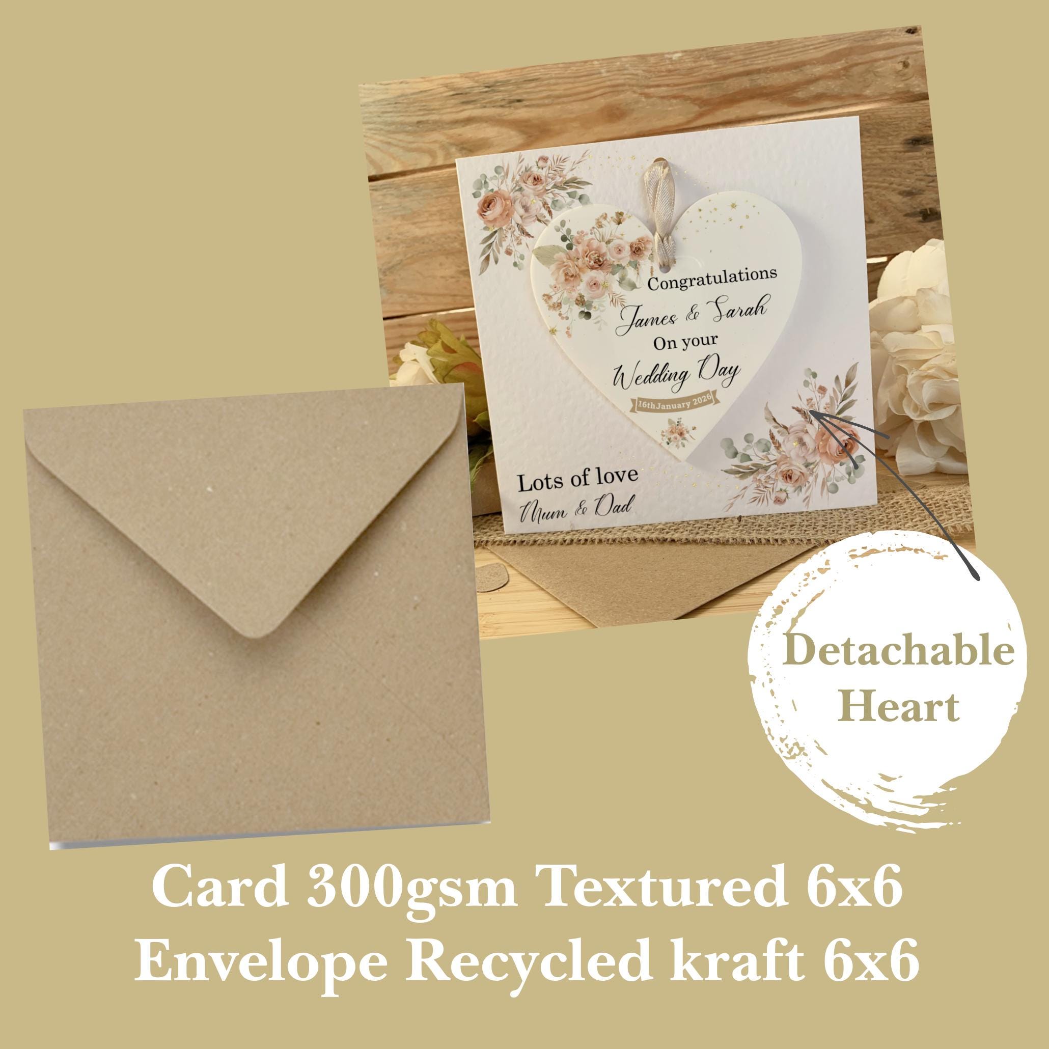 The heart is made from acrylic and printed with your details, attached to a Linen card which can be removed and kept as a memento to remember a special day.
