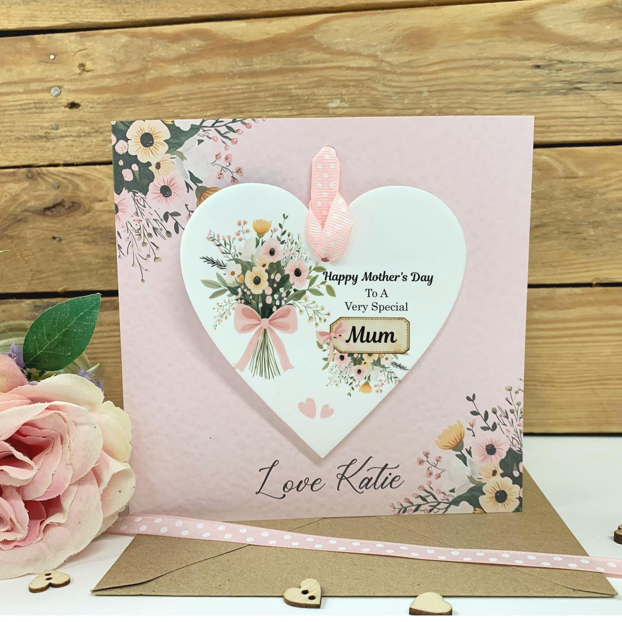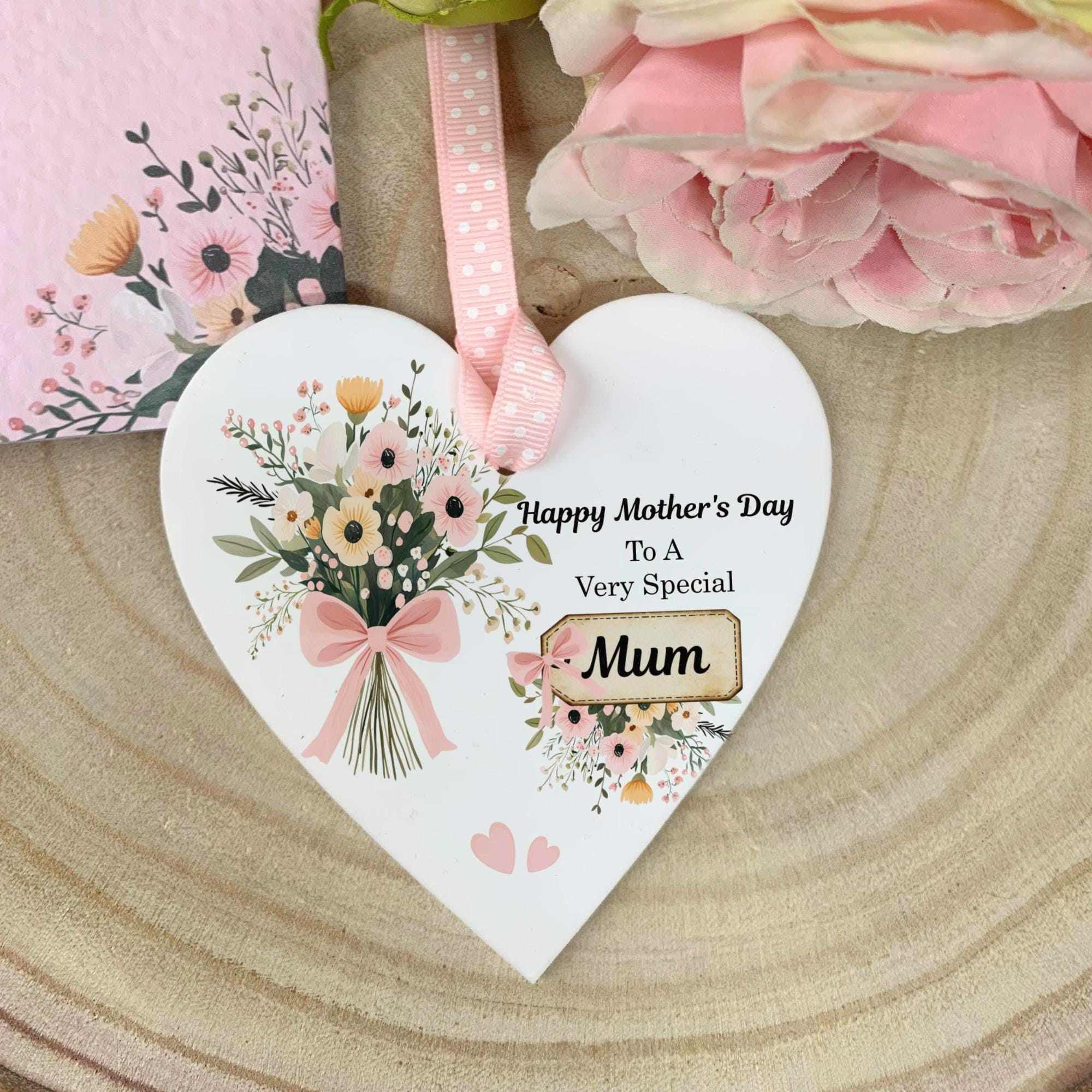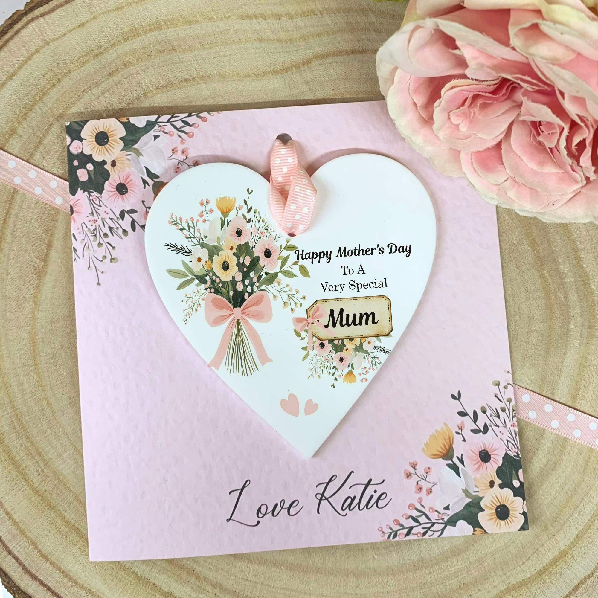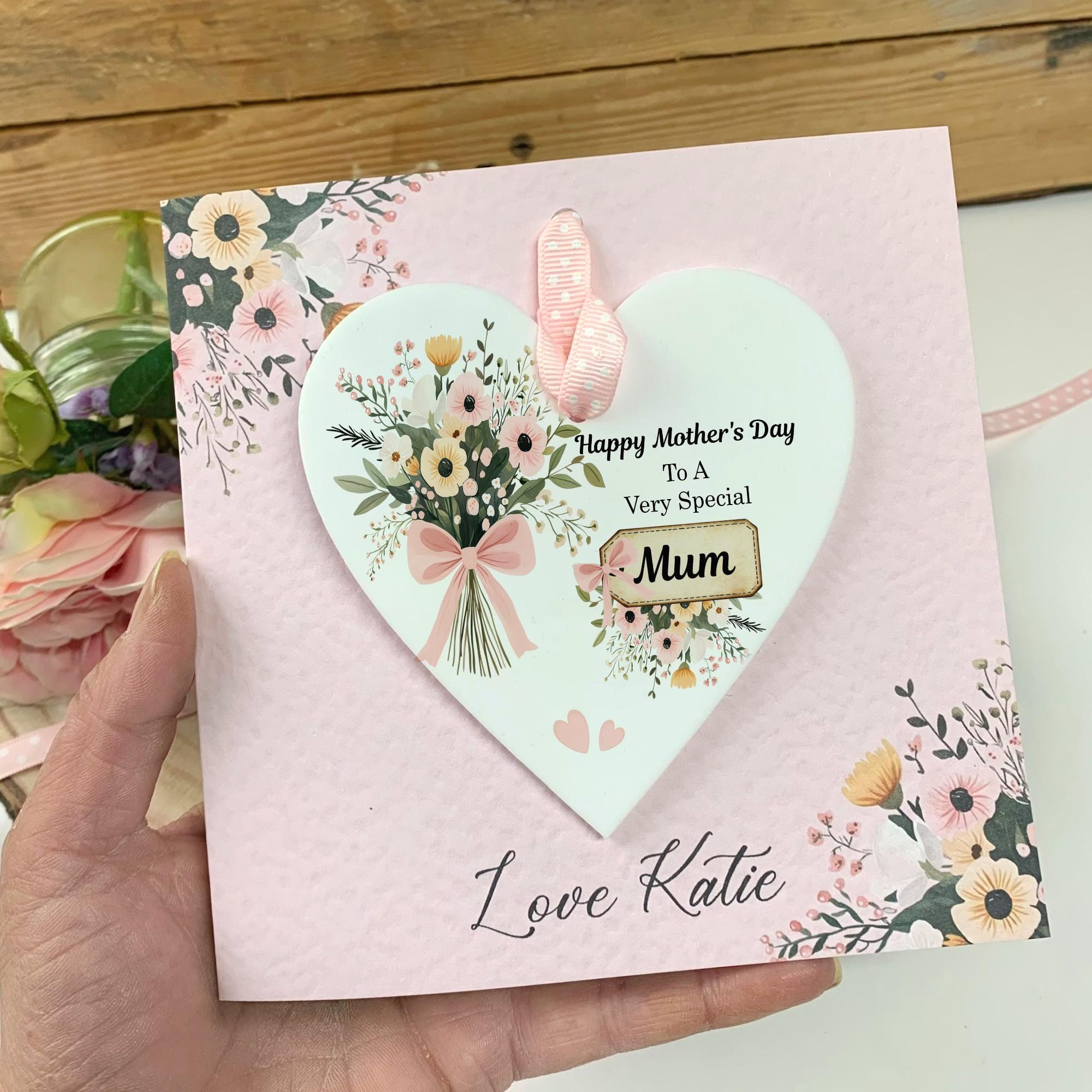 Show your love with this stunning personalised acrylic heart, featuring the touching sentiment: " This high-quality floral keepsake is more than just a decoration; it’s a heartfelt reminder of a special bond, perfect for Mother’s Day,
