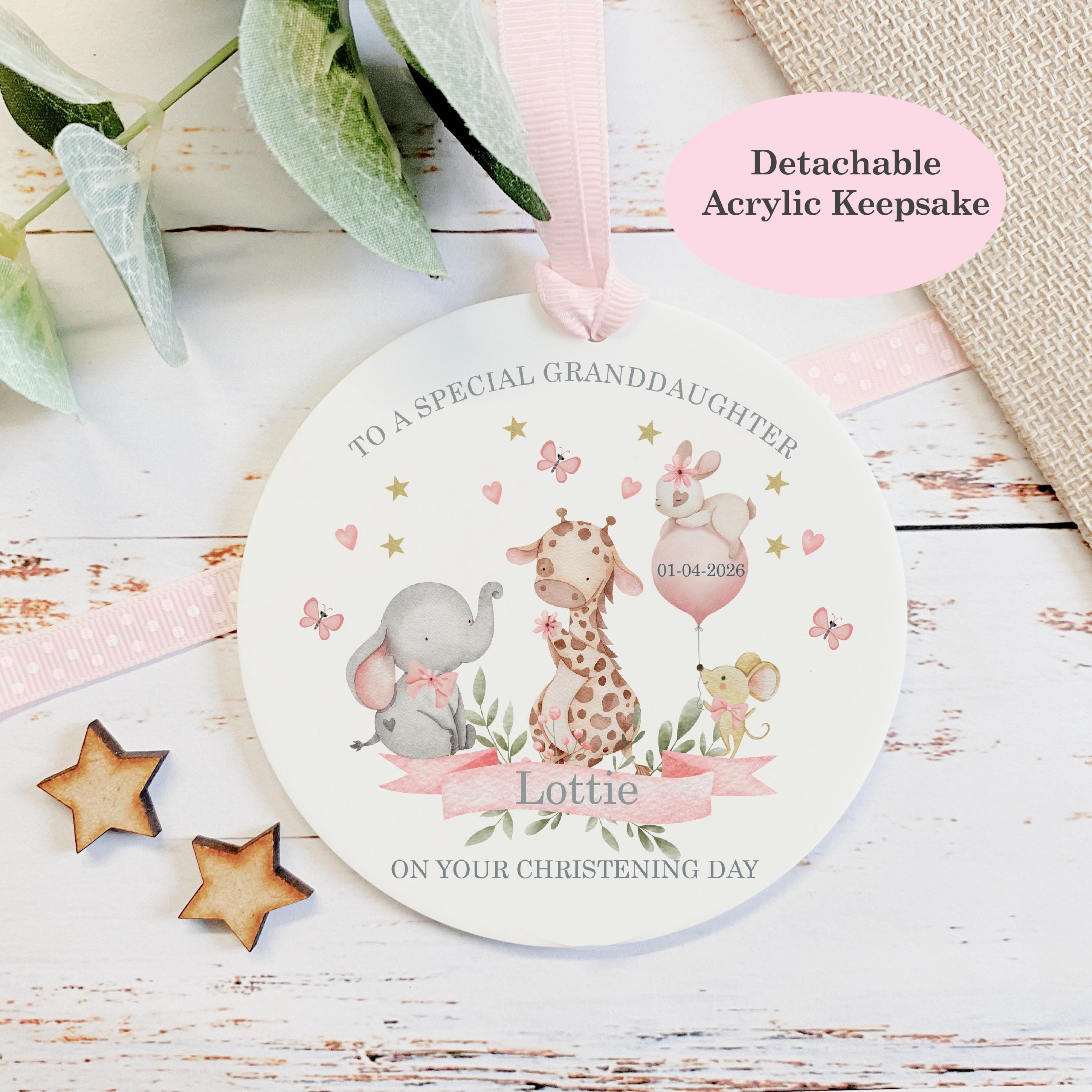 Designed with cute Animals theme this keepsake makes a beautiful gift to mark a special Christening or Baptism