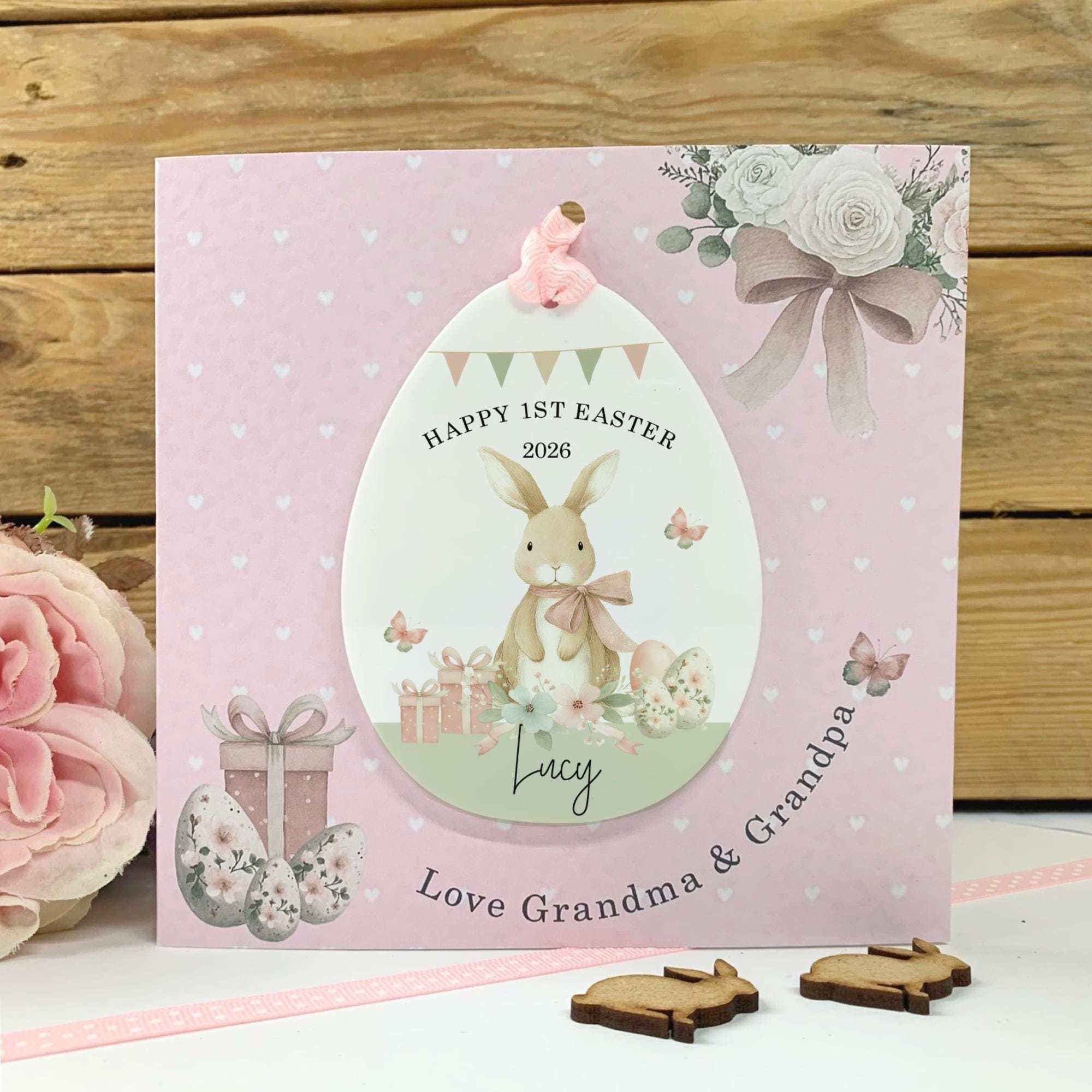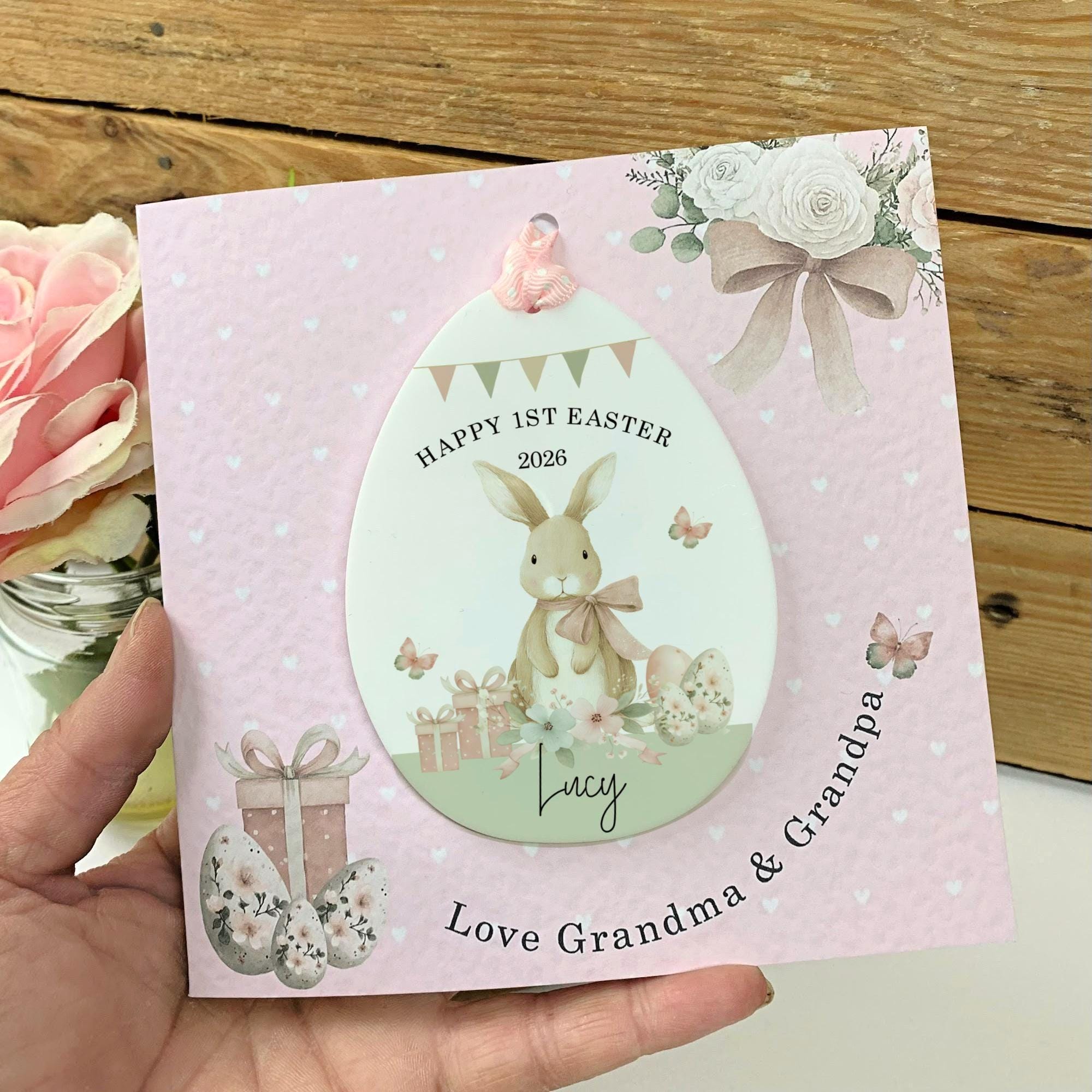 This Personalised Easter Egg Card is a beautiful way to surprise your granddaughter, daughter, or niece with something special this spring. Designed with a charming egg decoration theme, it makes both a heartfelt card and a lovely Easter keepsake.