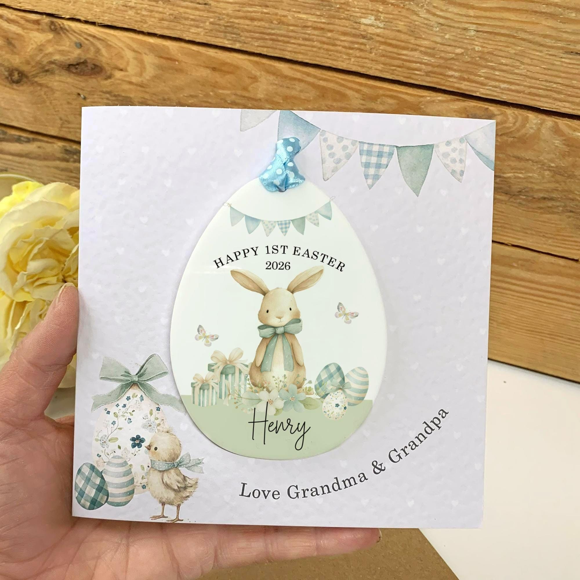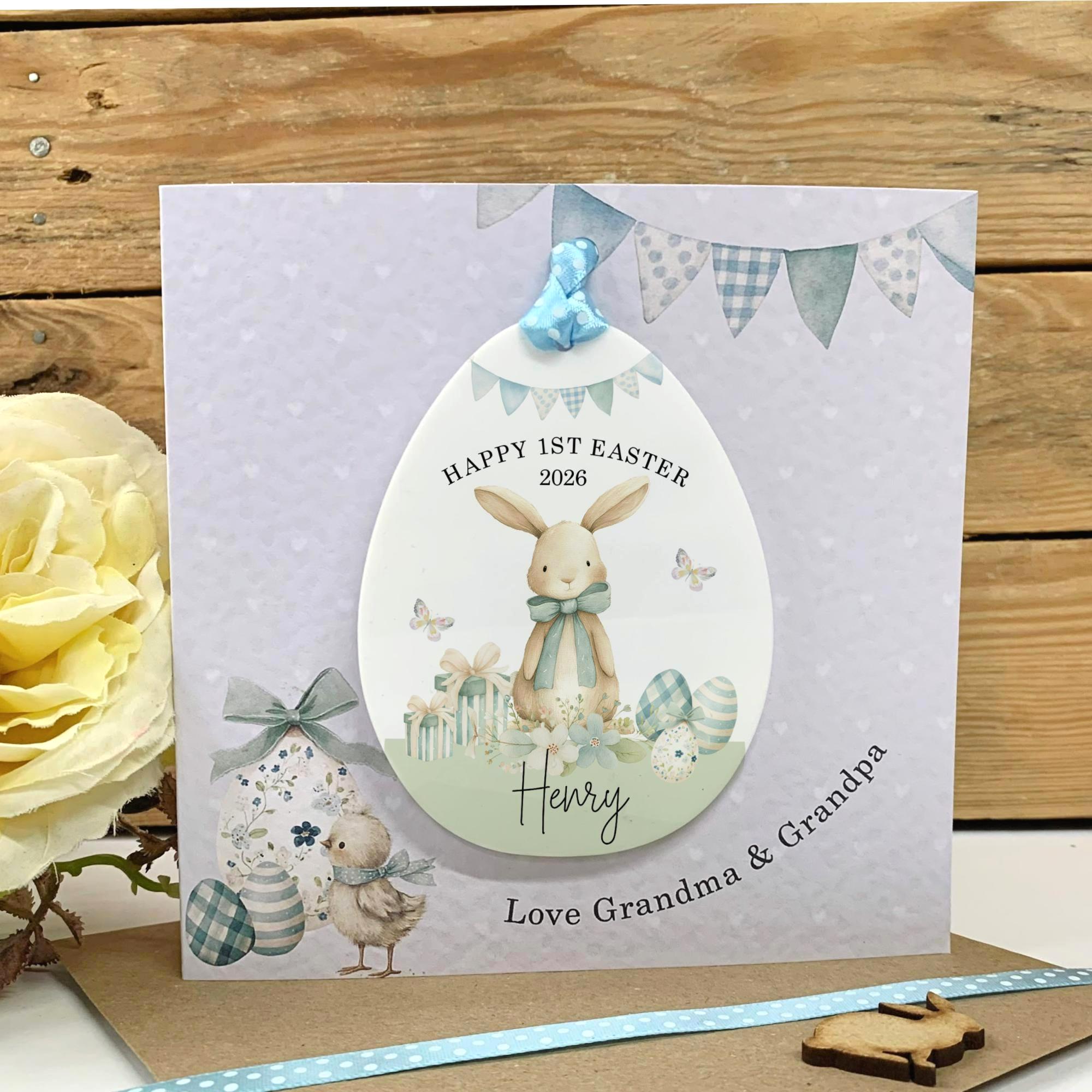 This Personalised Easter Egg Card is a beautiful way to surprise your grandson, Son, or nepwes with something special this spring. Designed with a charming egg decoration theme, it makes both a heartfelt card and a lovely Easter keepsake.