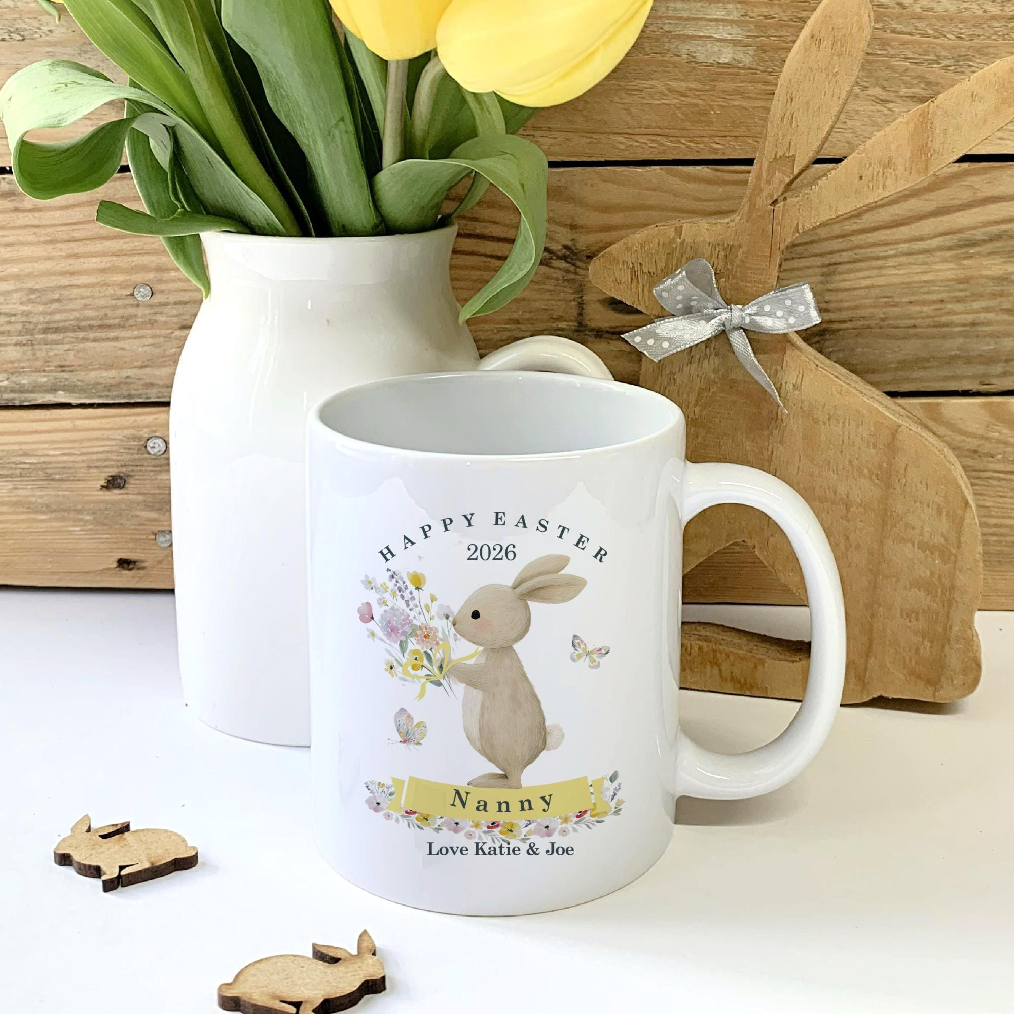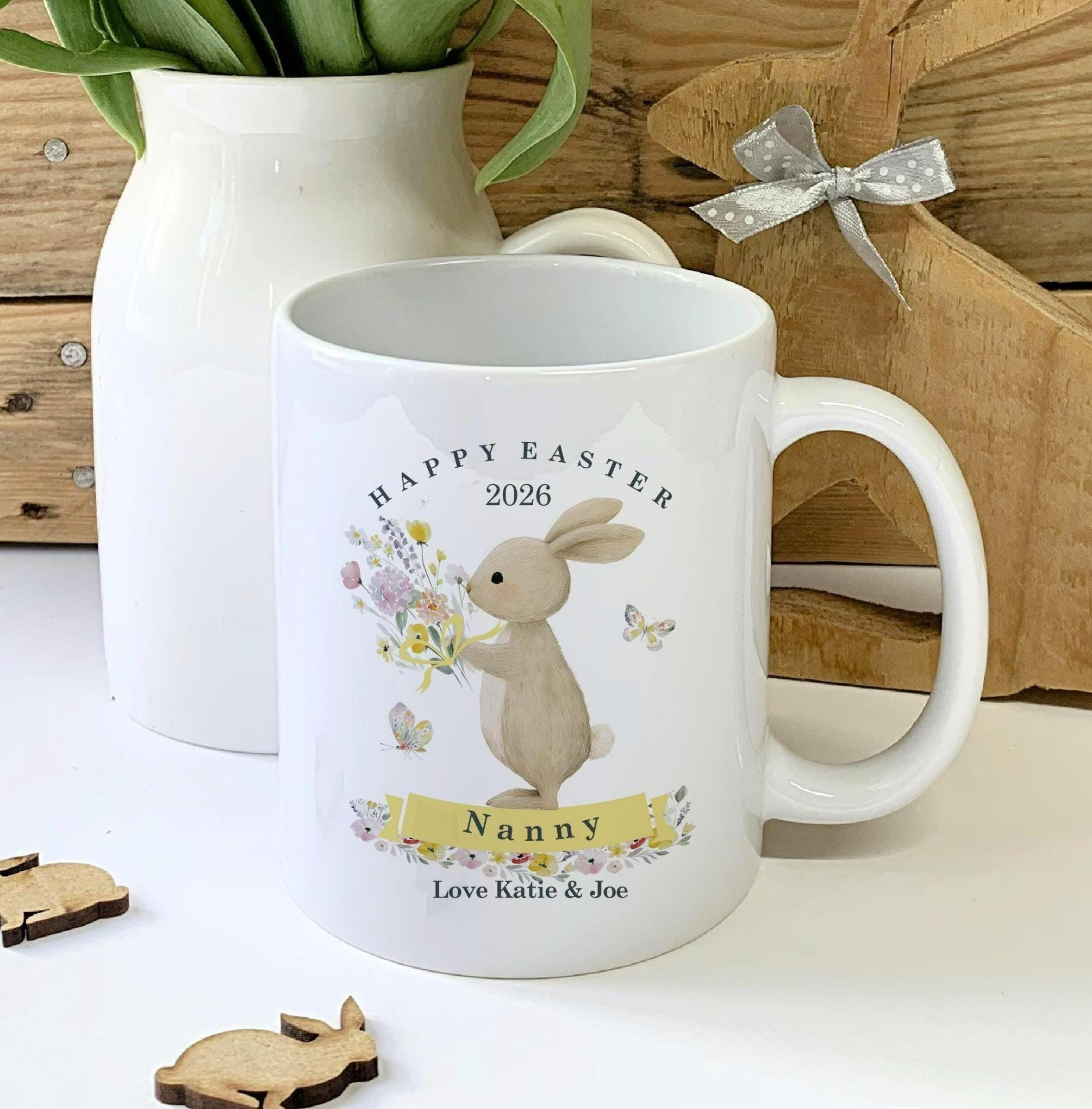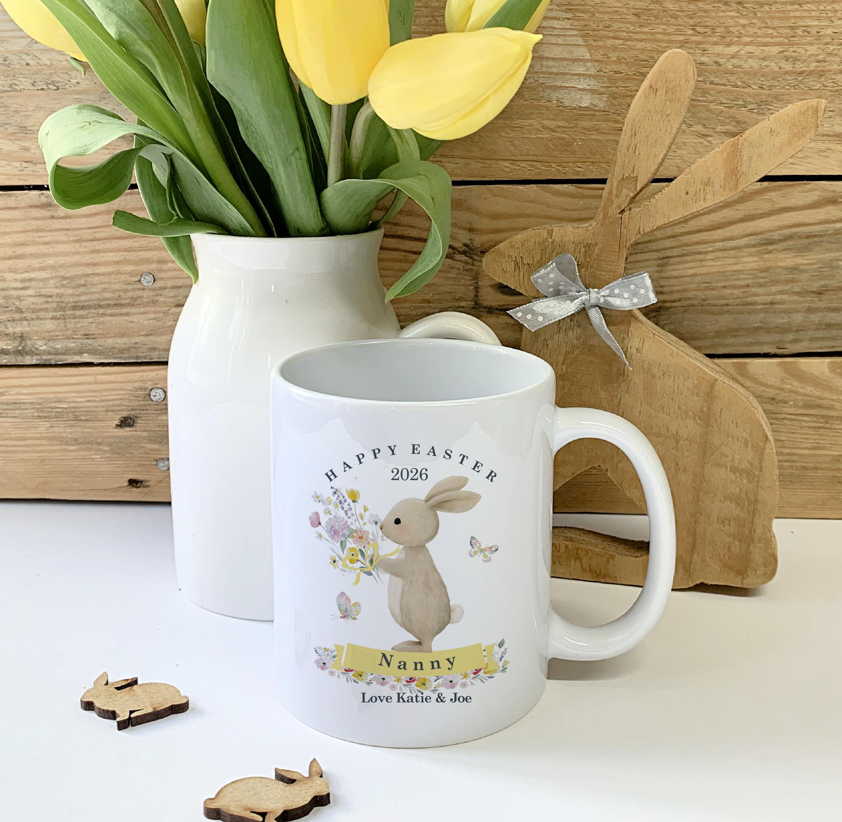 Personalised Spring Flower Mug – Ceramic Easter Keepsake for Nanny, Grandad & Loved Ones, Floral Bunny Design