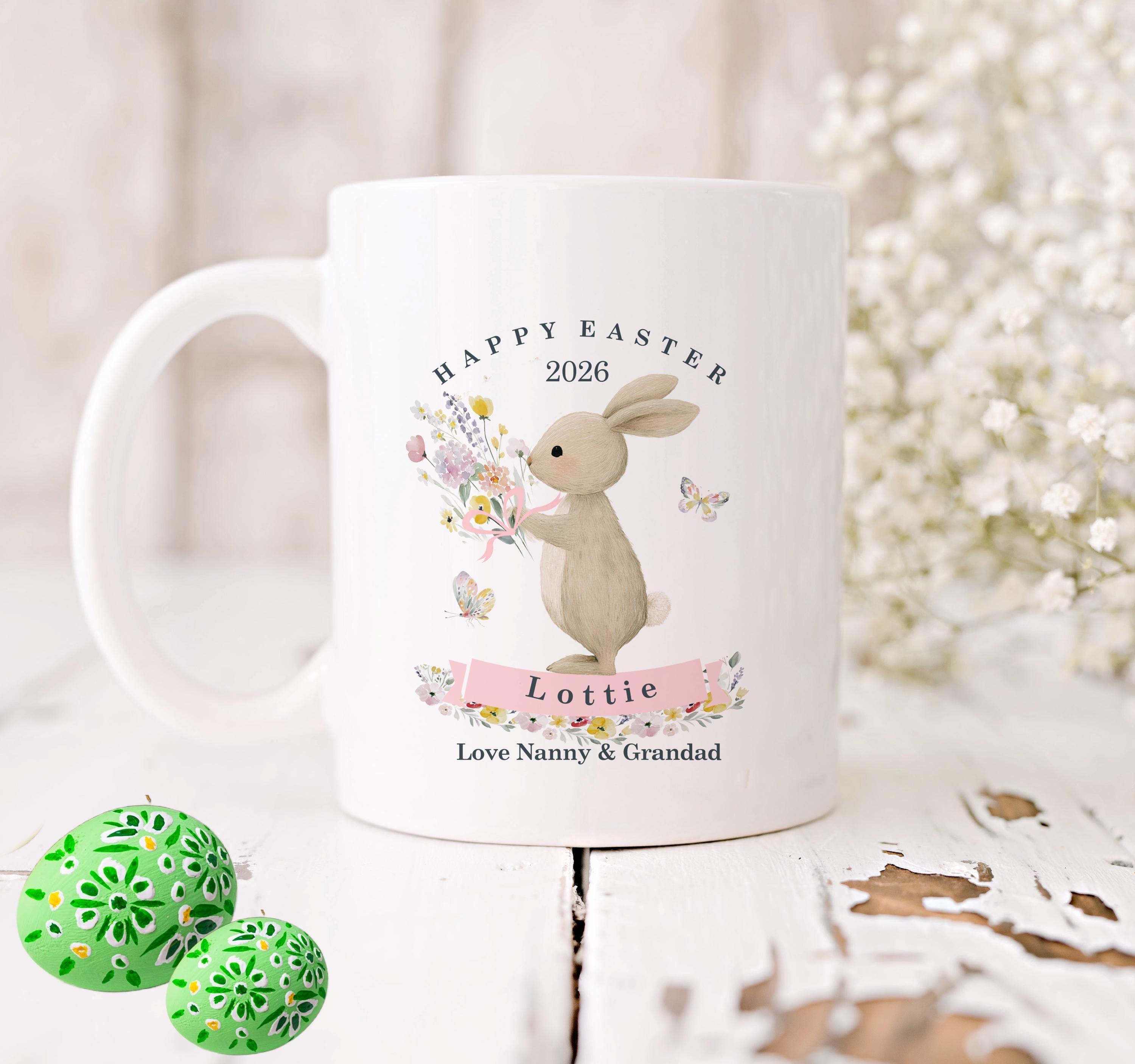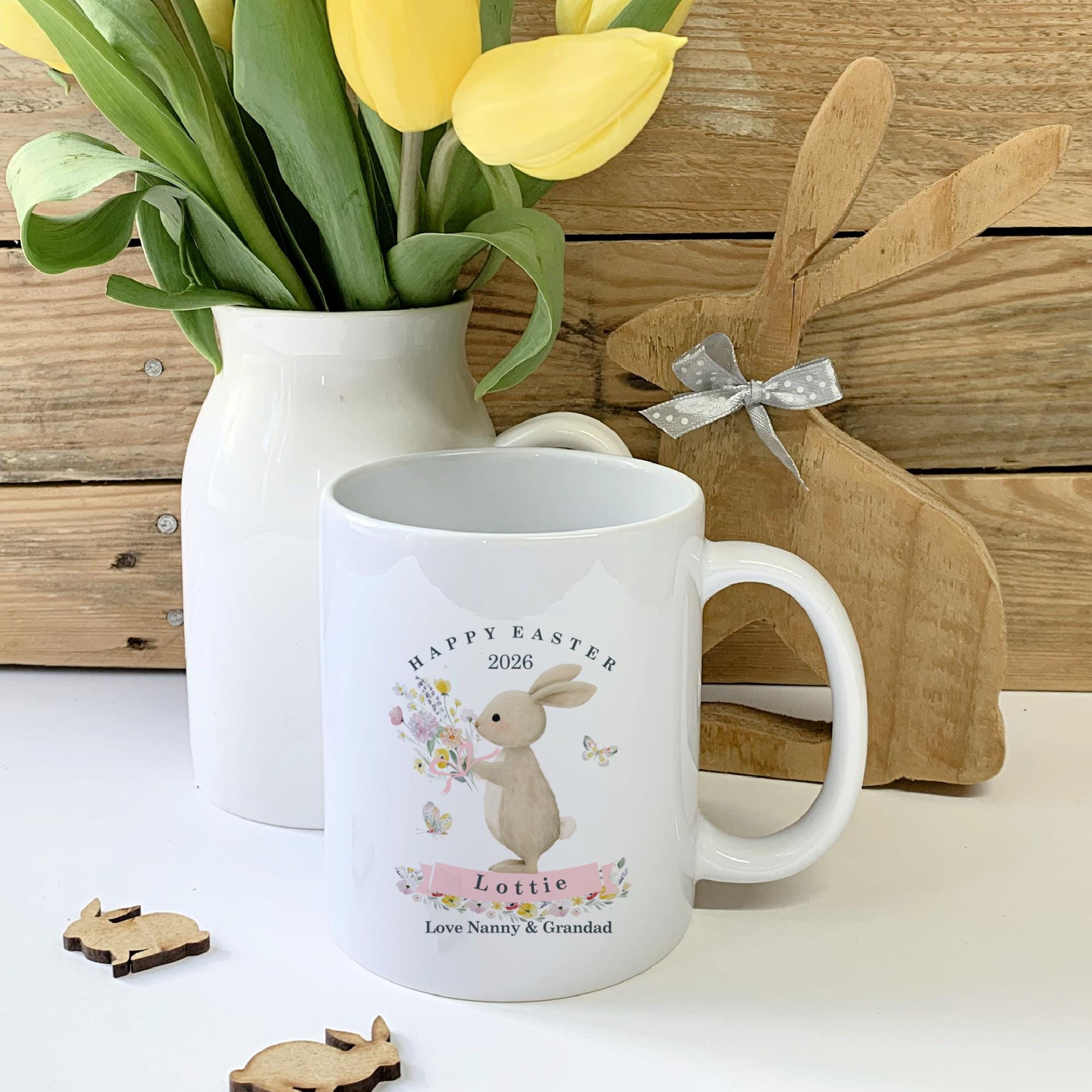 Personalised Spring Flower Mug – Ceramic Easter Keepsake for Children Floral Bunny Design