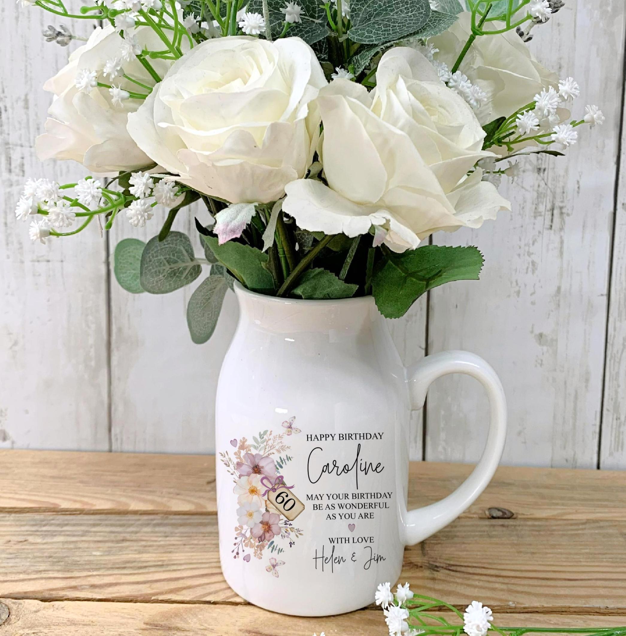 Personalised Birthday Keepsake Gift for Her, Birthday Vase, Birthday Present for Mum Friend Sister, Any Age Gift, Floral Design Gift,