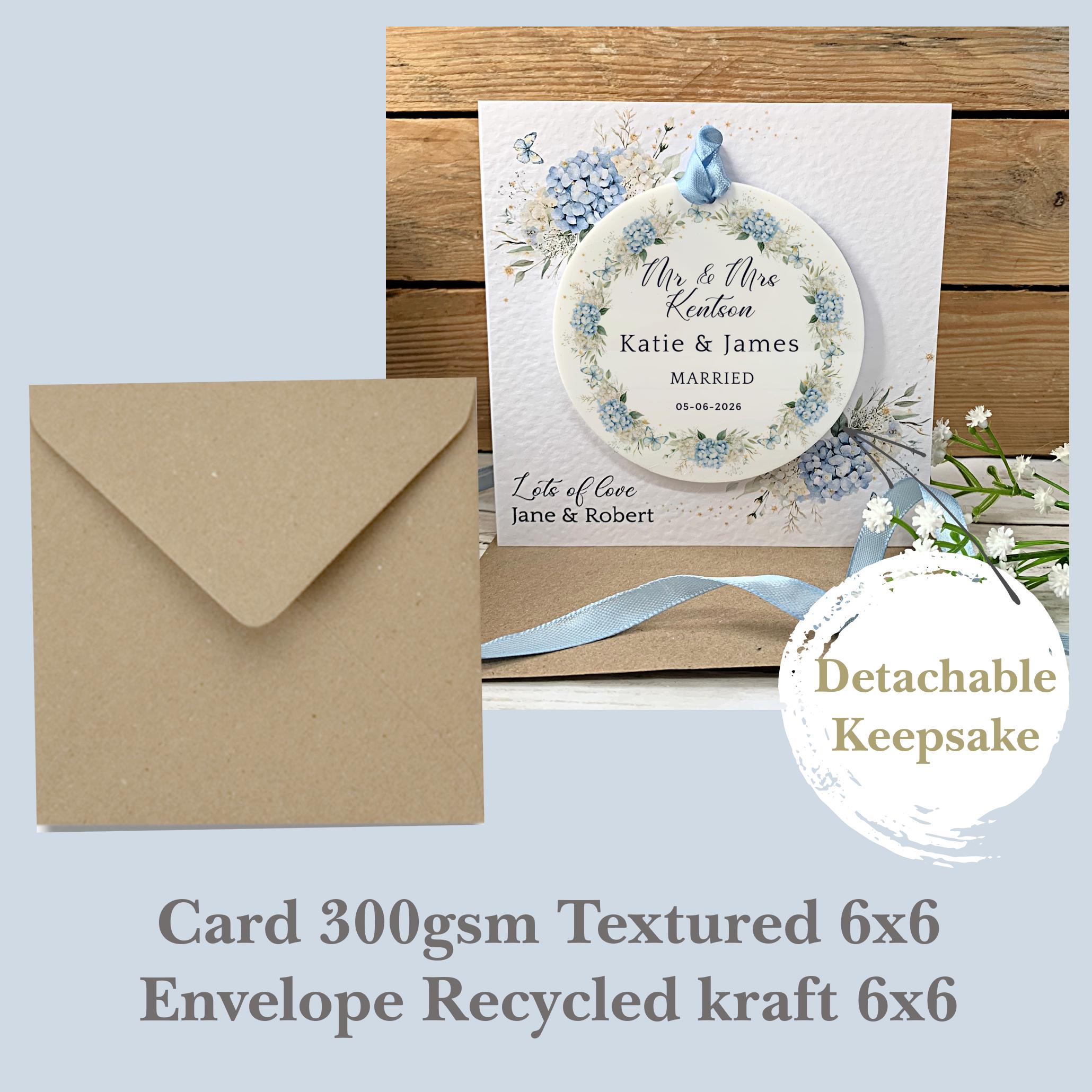 Celebrate a special couple with a beautiful personalised wedding card that becomes a lasting memory. This unique design features a detachable acrylic keepsake, making it more than just a card—it's a gift they can treasure forever.