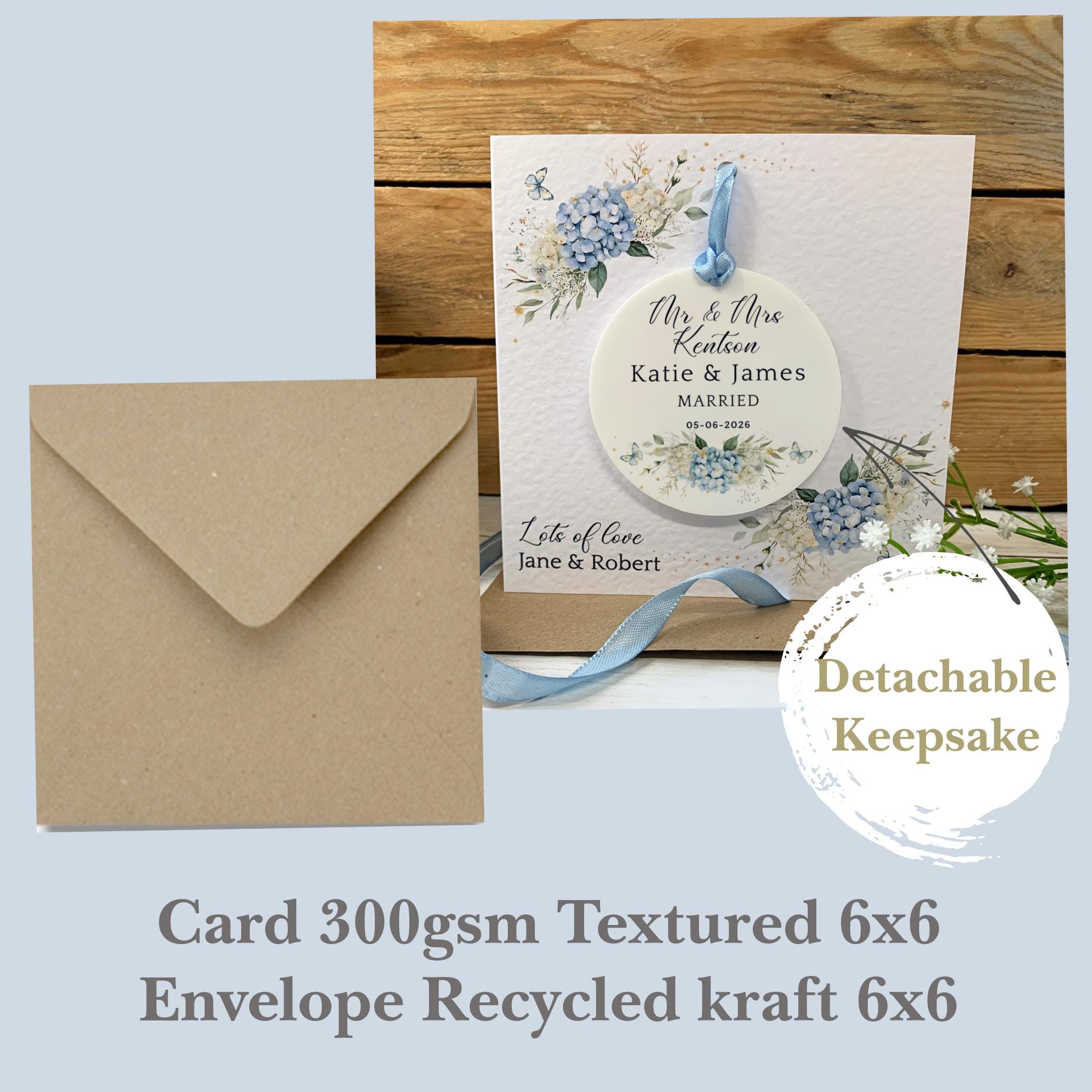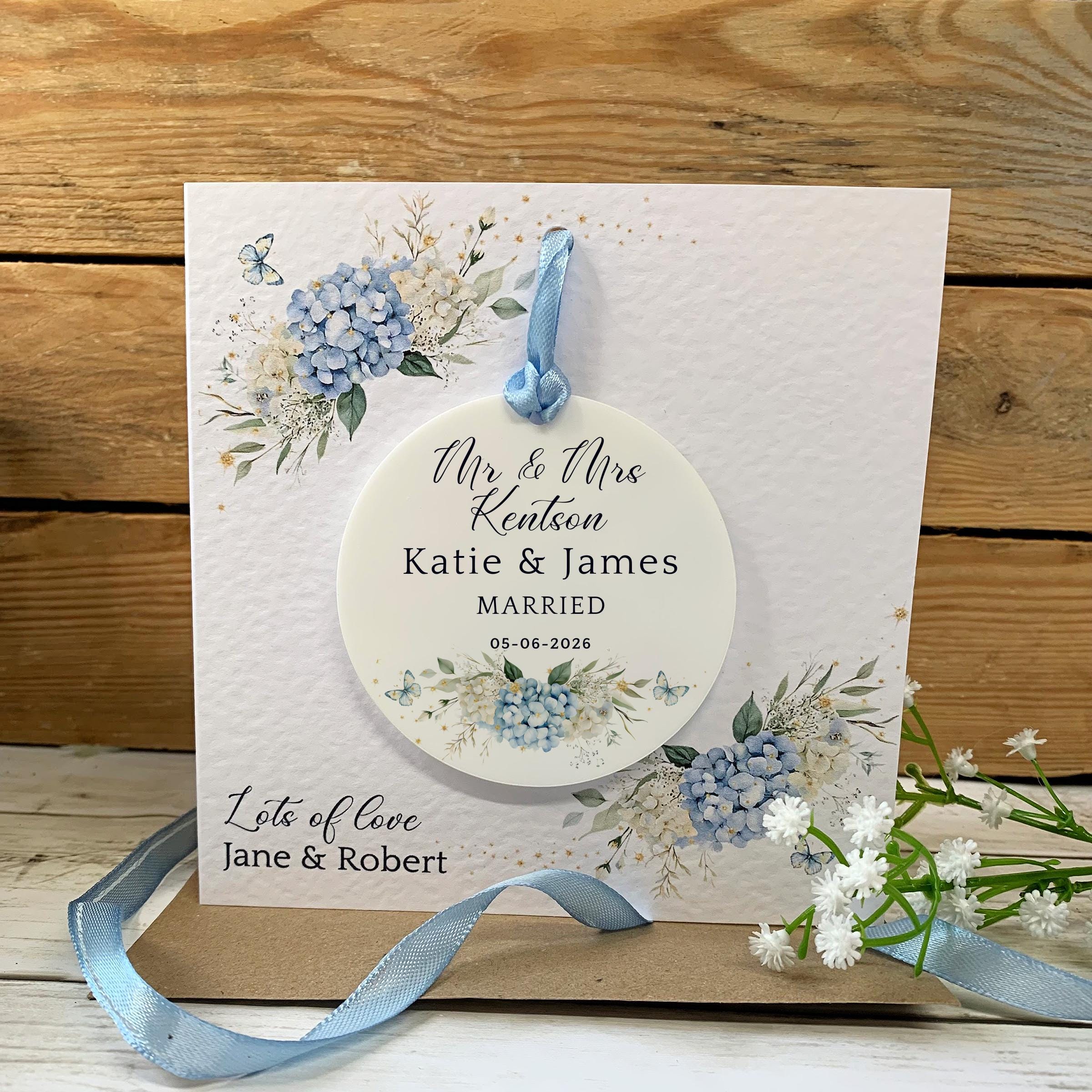 Celebrate a special couple with a beautiful personalised wedding card that becomes a lasting memory. This unique design features a detachable acrylic keepsake, making it more than just a card—it's a gift they can treasure forever.