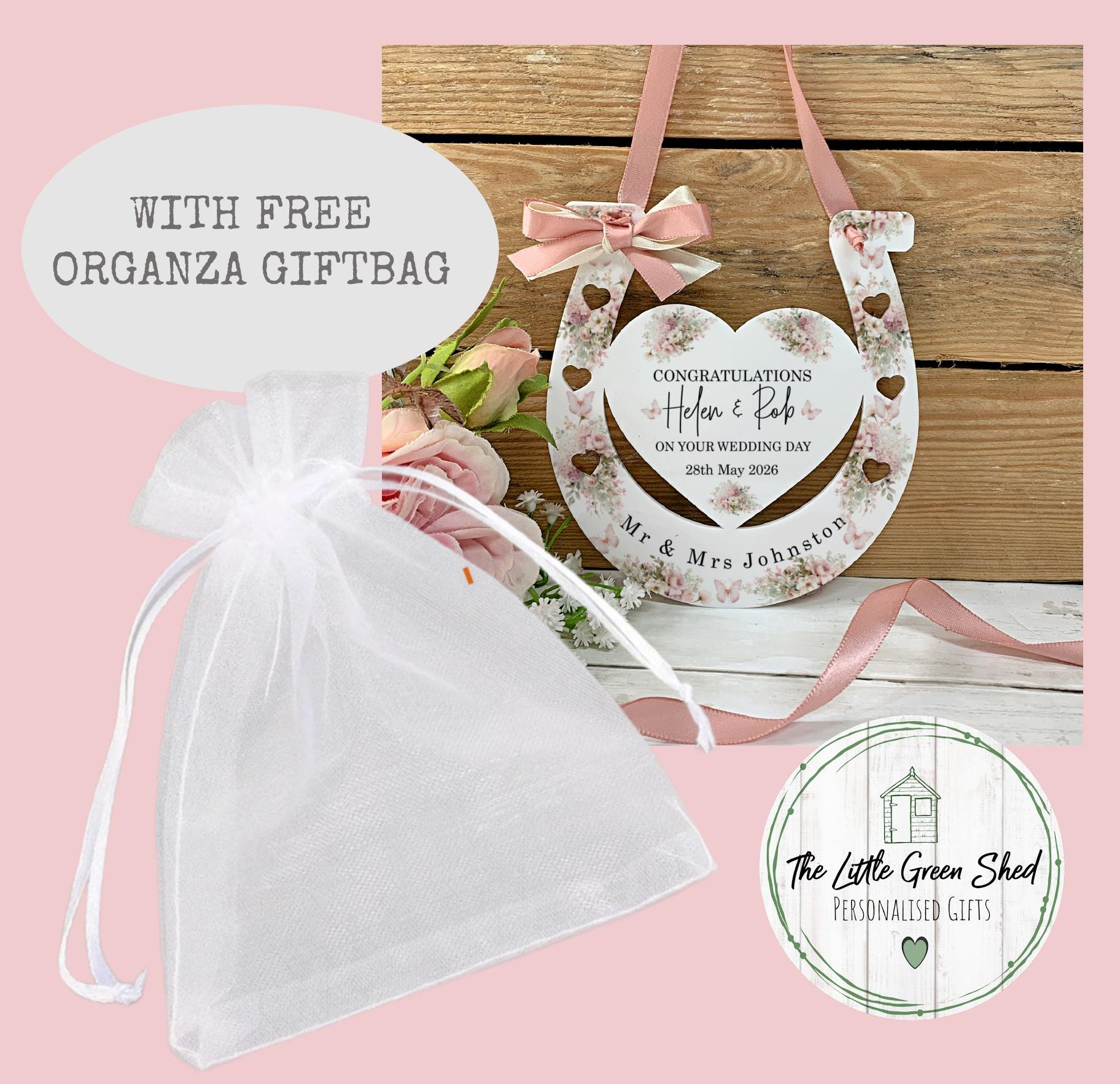 Personalised Wedding Horseshoe – Dusty Pink Good Luck Charm 💙