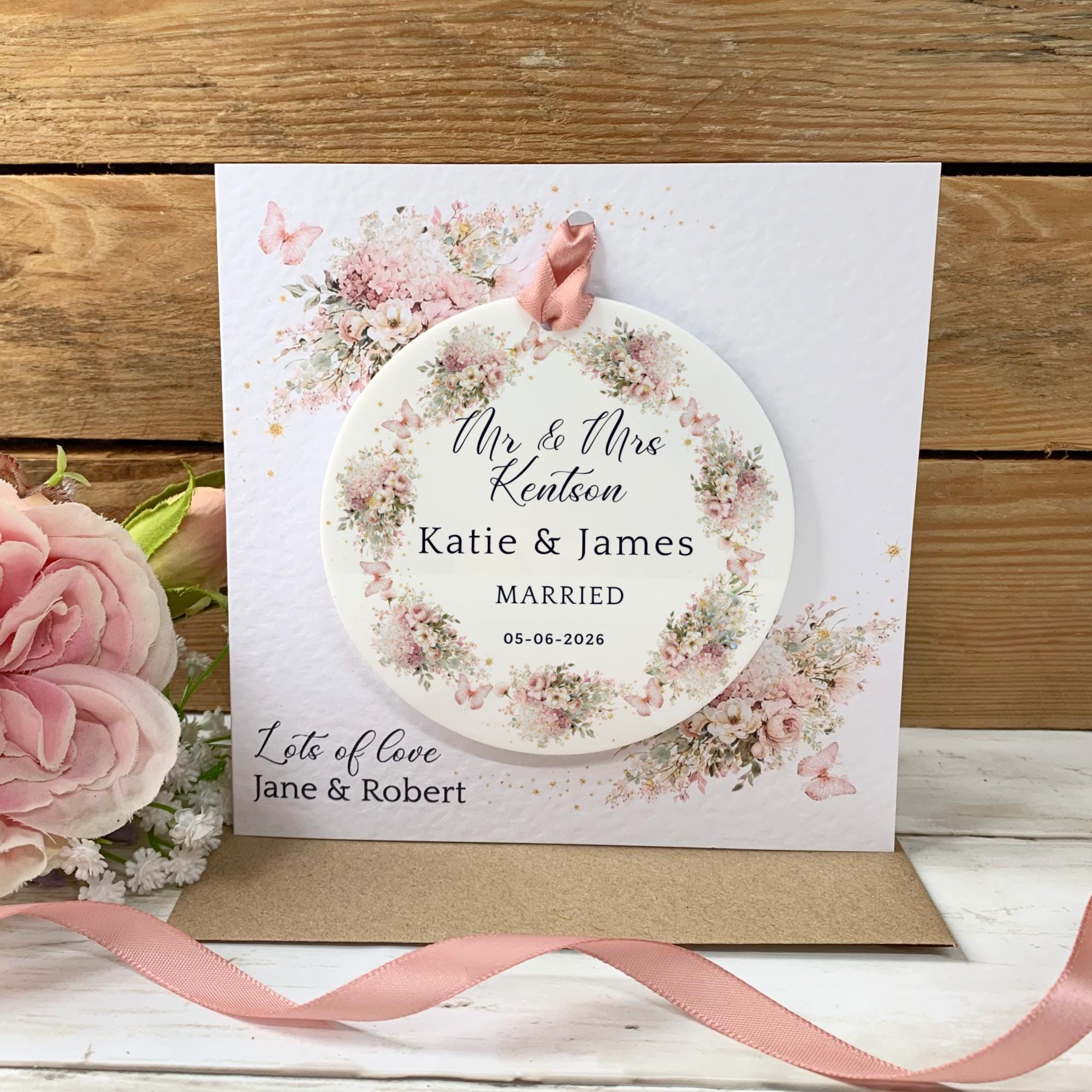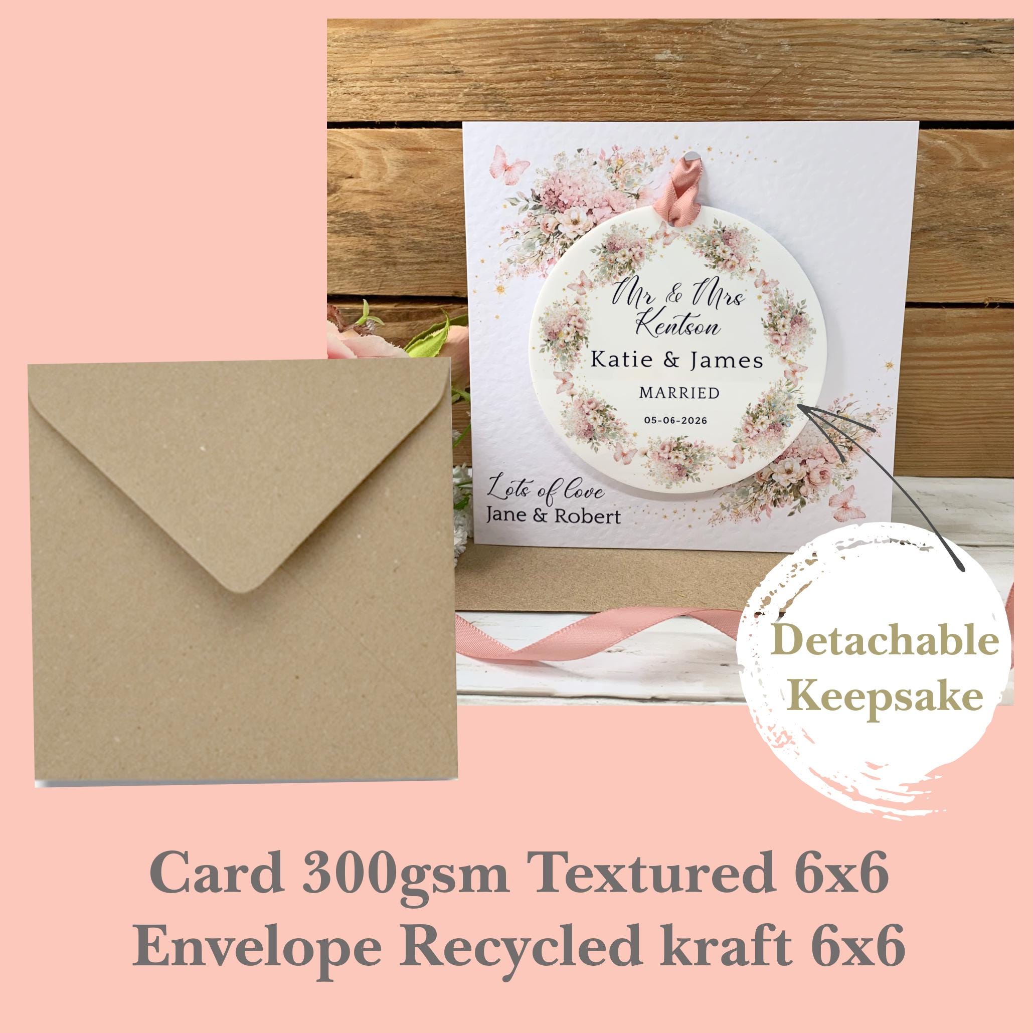 Celebrate a special couple with a beautiful personalised wedding card that becomes a lasting memory. This unique design features a detachable acrylic keepsake, making it more than just a card—it's a gift they can treasure forever.