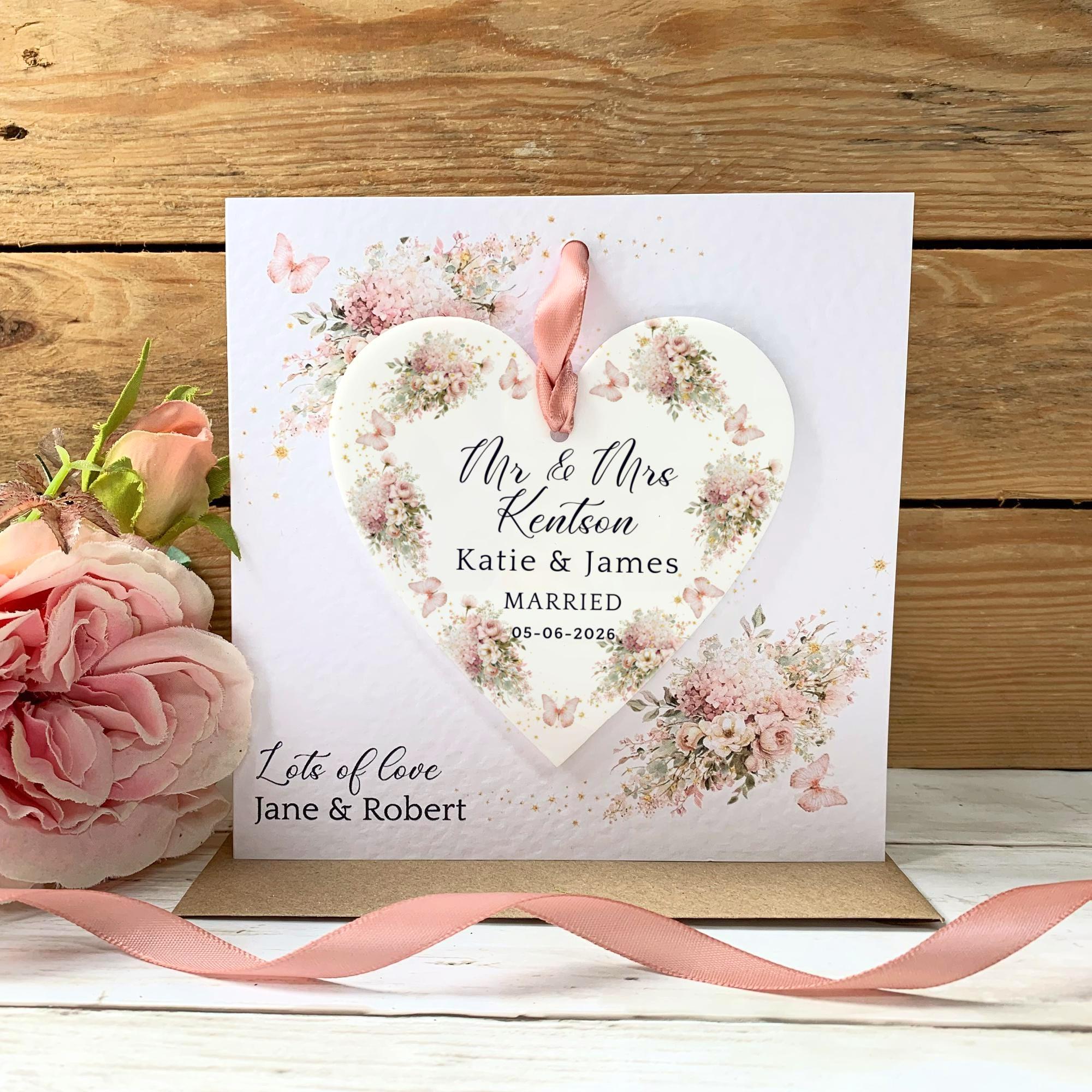 Celebrate a special couple with a beautiful personalised wedding card that becomes a lasting memory. This unique design features a detachable acrylic keepsake, making it more than just a card—it's a gift they can treasure forever.