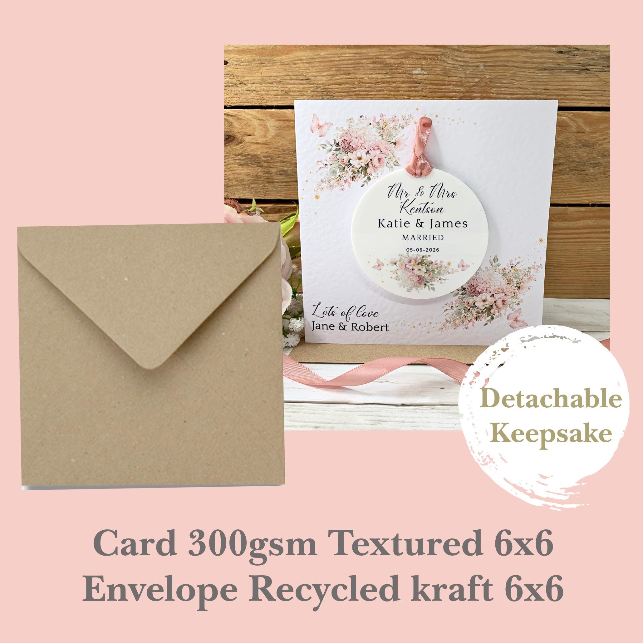 Celebrate a special couple with a beautiful personalised wedding card that becomes a lasting memory. This unique design features a detachable acrylic keepsake, making it more than just a card—it's a gift they can treasure forever.