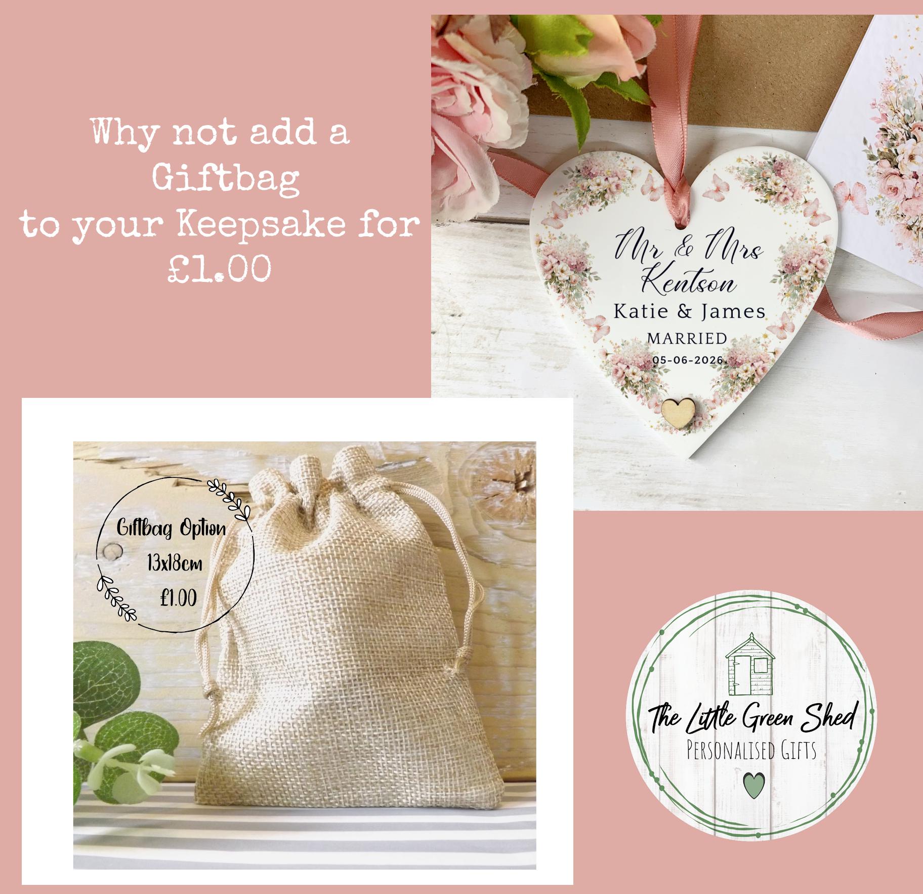 * IF OPTING FOR THE GIFTBAG IT MEASURES 13X18CM HESSIAN