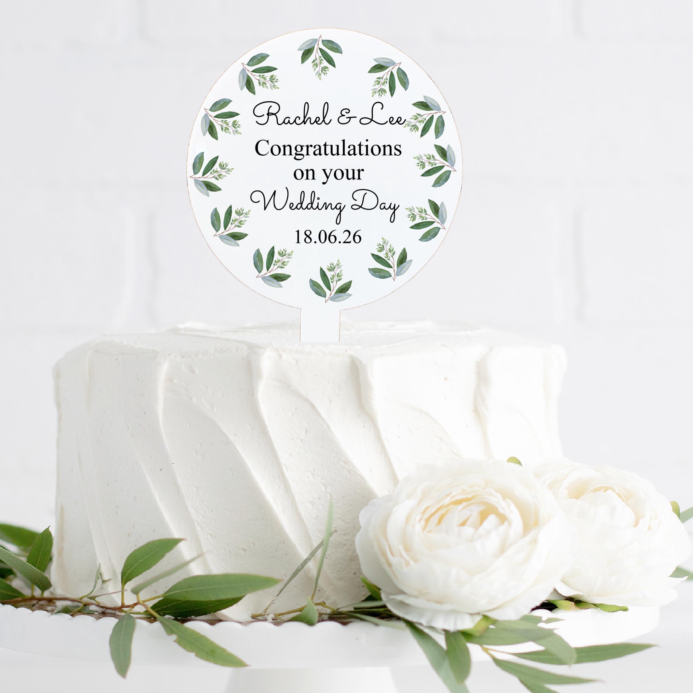💙Sage green Floral Wedding Cake Topper – Personalised Elegant Wedding Decor