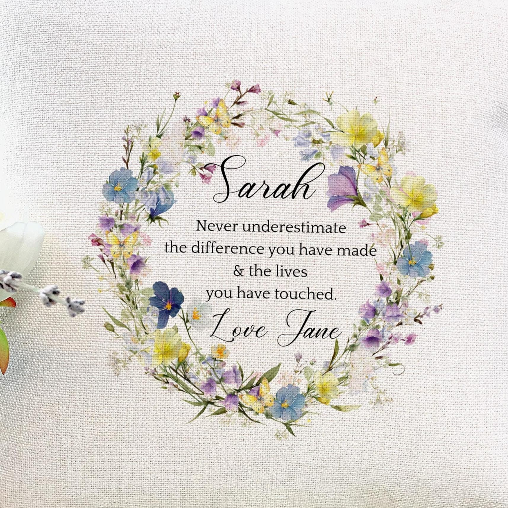 Celebrate a friend with a handmade personalised Spring floral cushion made especially for her 💕