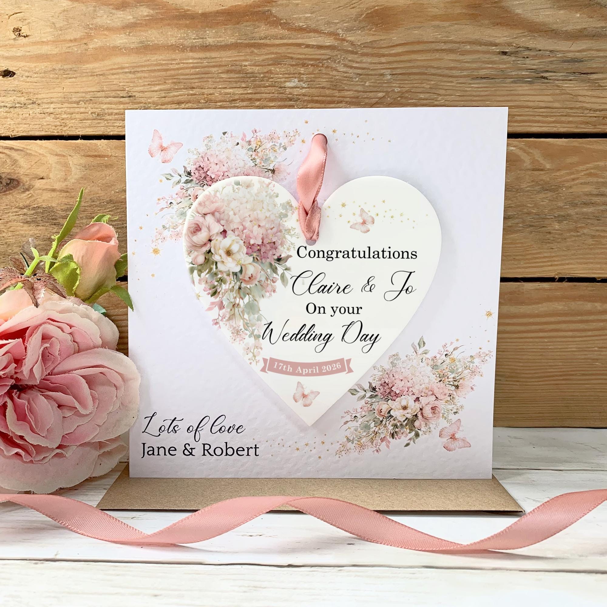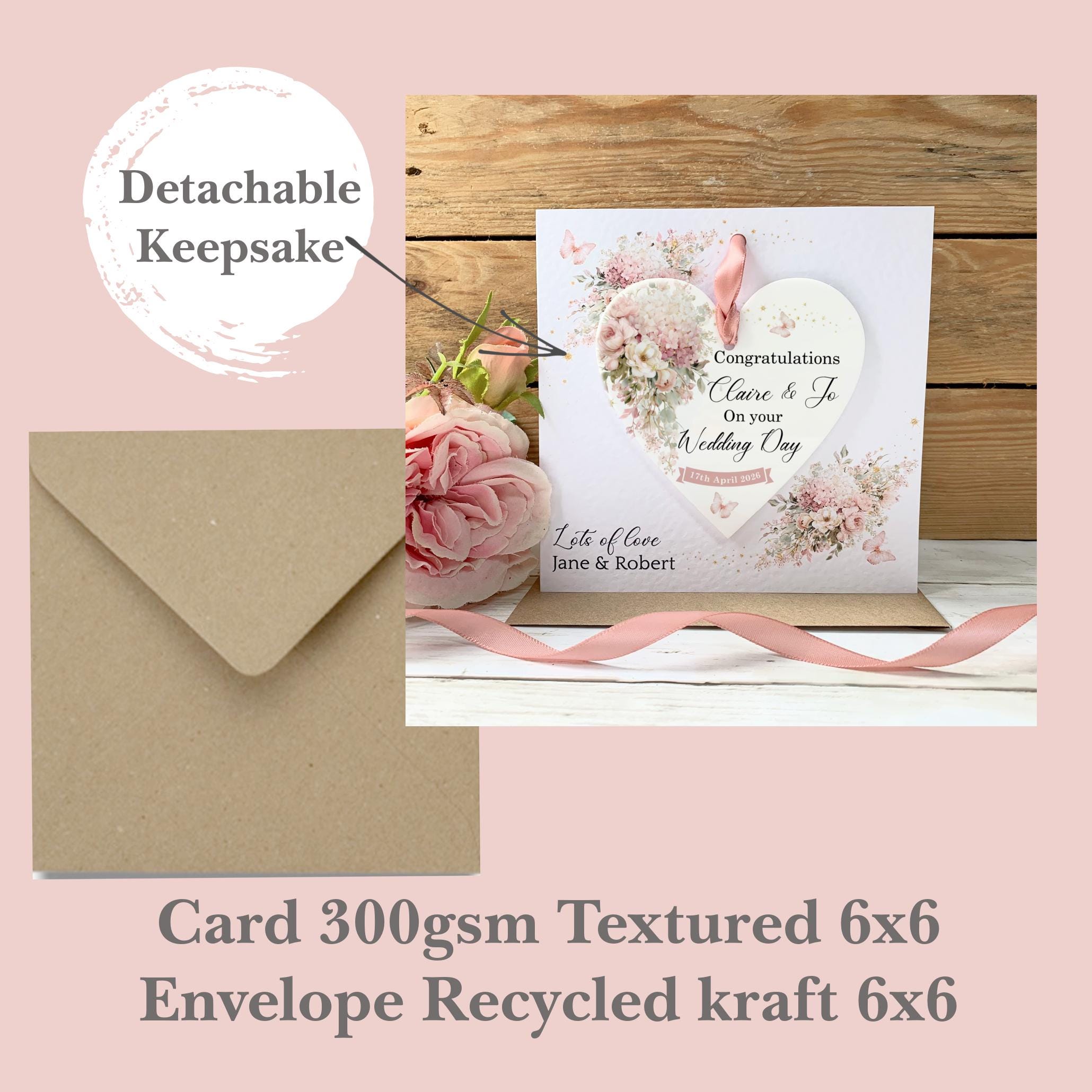Celebrate a special couple with a beautiful personalised wedding card that becomes a lasting memory. This unique design features a detachable acrylic keepsake, making it more than just a card—it's a gift they can treasure forever.