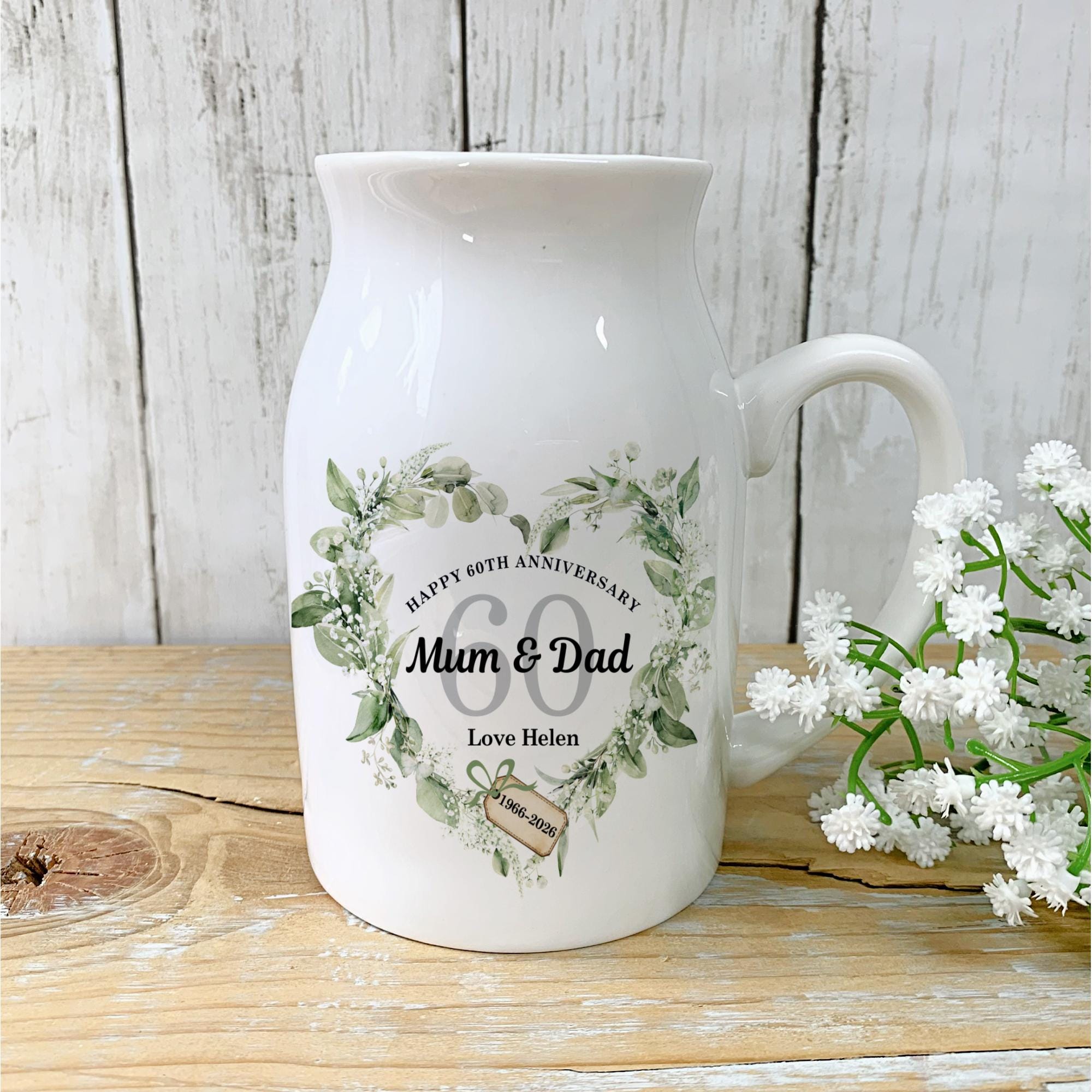 Diamond Wedding Anniversary Ceramic Vase, Grandparents 60th Anniversary,Sage Green Anniversary Gift, 60 Years married, Diamond Anniversary